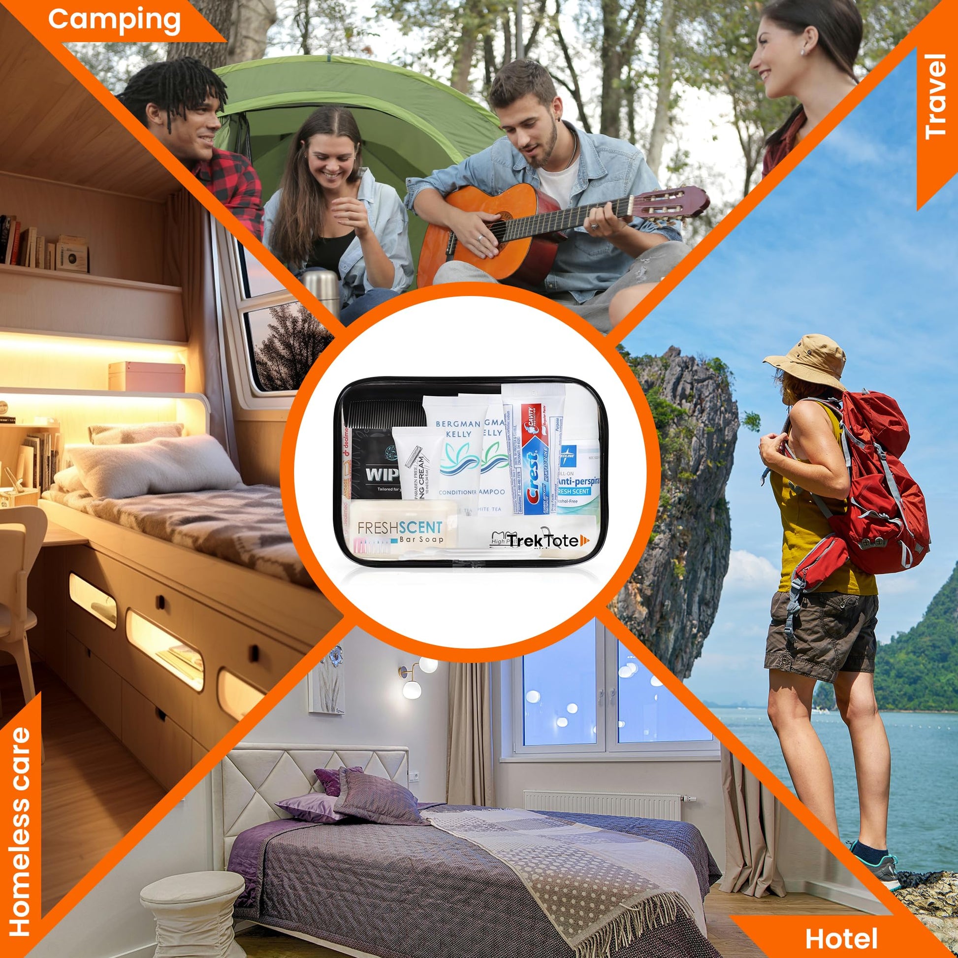 • Premium Travel Toiletries: A versatile hygiene travel kit featuring essentials like shampoo, conditioner, body wash, deodorant, shaving cream, and more – your go-to personal hygiene kit for men and women.