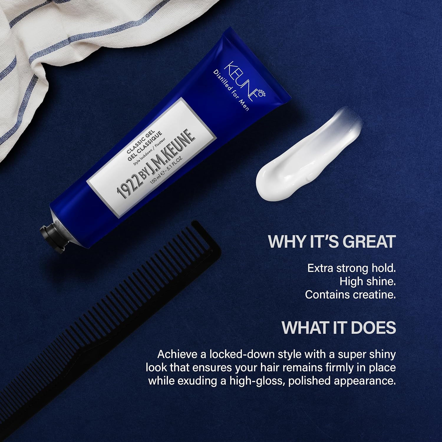 1922 by J.M. Keune Classic Gel, Strong Hold & Shine Styling Gel for Men, 5.1 Fl Oz