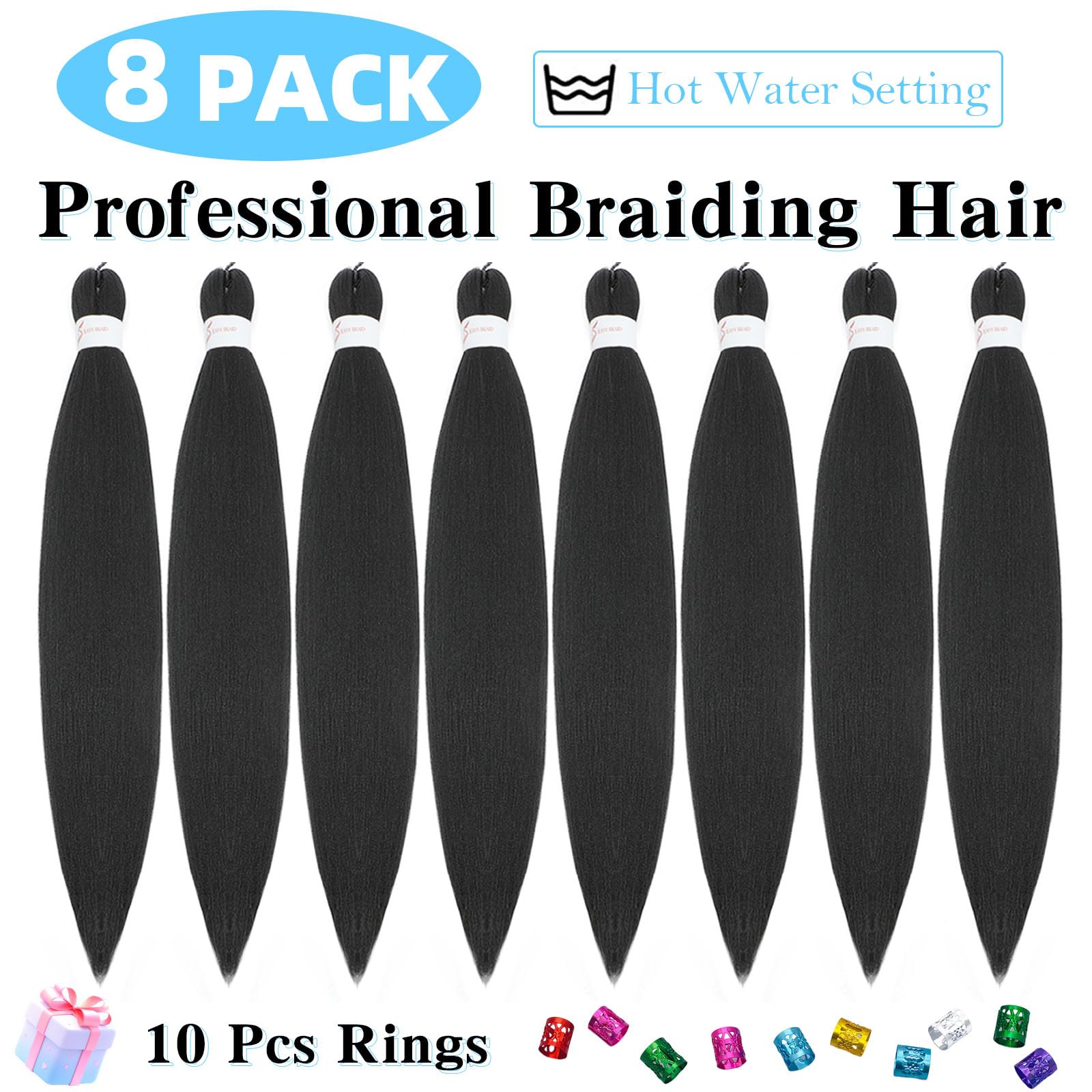 - Hair For Braiding Package: You will get 8 pack of braiding hair pre stretched and 10 pcs rings; 16-30 inch available and multiple colors braiding hair for you to choose.