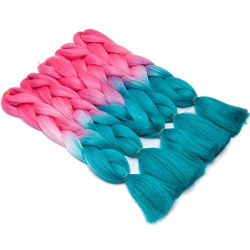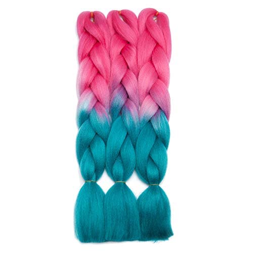 24 Inch Ombre Jumbo Braiding Hair Extensions Jumbo Braid Hair Ombre Long Jumbo Braids For Box Twist Braid Crochet Hair High Temperature Fiber 3 Tone Colored (3 Bundles, Dark Pink to Lake Blue)