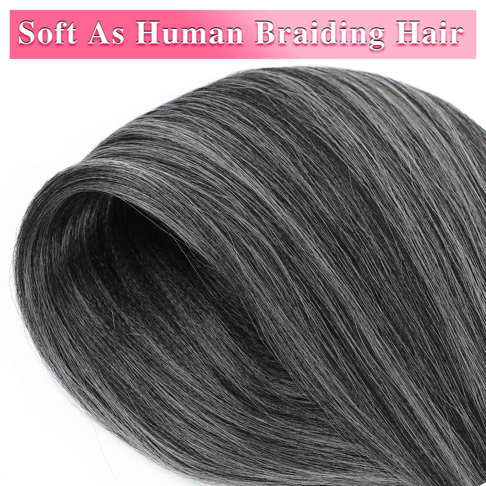 32 Inch Pre Stretched Braiding Hair Ombre Grey Long Crochet Braid Hair Yaki Braiding Hair Pre Stretched Hot Water Set Synthetic Braids(1B/Grey, 6packs, 32inch)