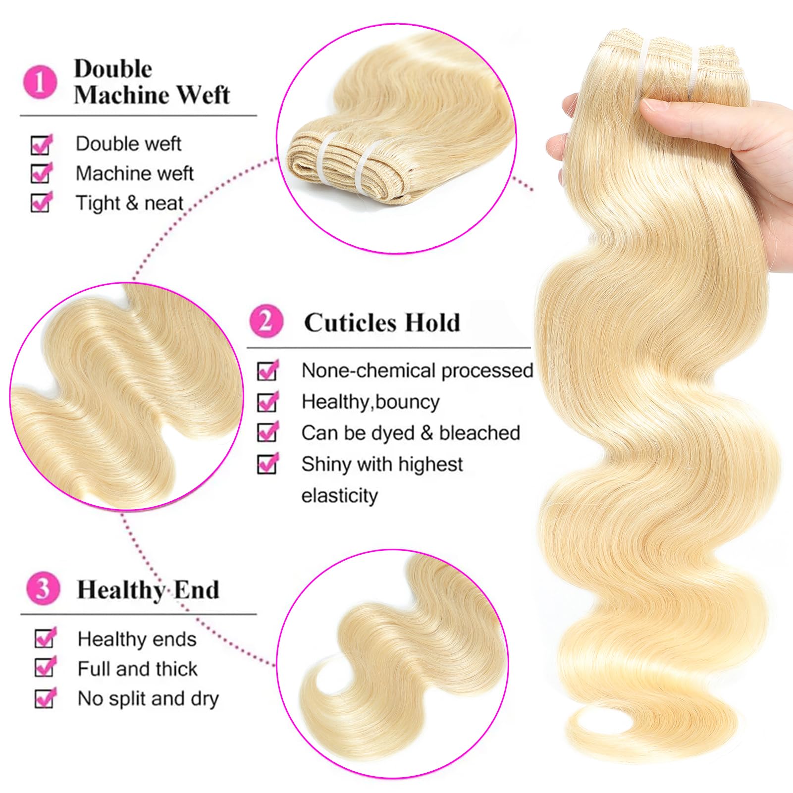 - Quality: Our 613 Human Hair Bundles Are Double Weft Hair Bundles for Extra Durability and to Prevent Shedding. You Can Use Heated tools Like Curling Irons and Straighteners (within 160 - 180℃ ) to Style Your Hair, Easy to Style