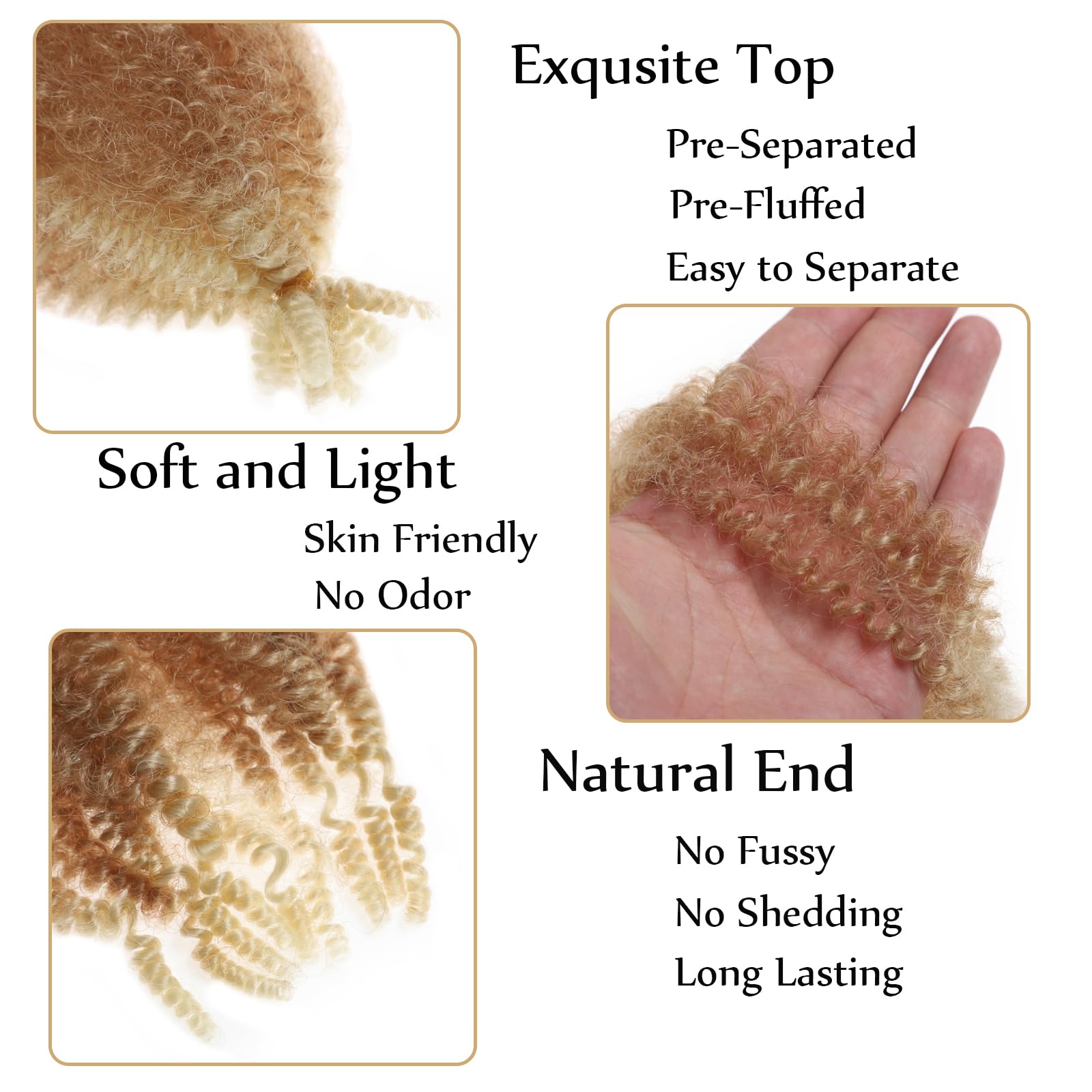 - ✿【Wrapping Hair Advantages】:Our Spring Twist Hair Boasts More Density and Length Than Other Products.Springy Afro Twist Hair Use Pre- Separated & Pre- Fluffed, Spring Hair isn't Heavy Very Soft and Doesn't Tangle Easy.Spring Afro Twist Hair Shiny, Color Was Very Bright, Heat Resistant, Last Long Time, Easy Quick to Crochet, Easy to Install, Save Your Time.