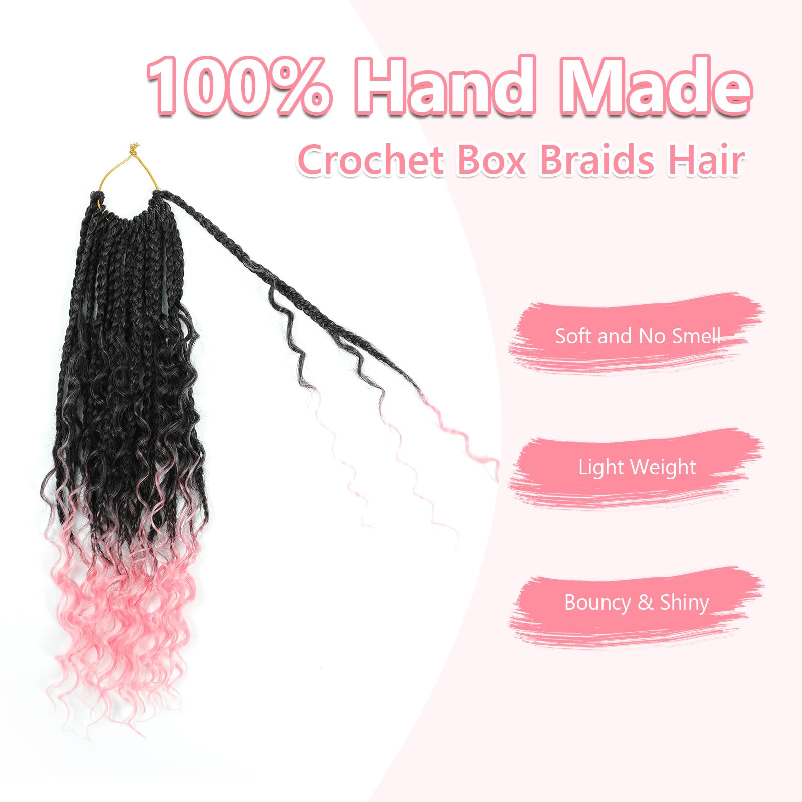 - 【Crochet Box Braids Style】-- Big Pre looped crochet braids crochet hair, boho crochet braids bohemian crochet hair easy to wear;box braid crochet hair pre looped; 3X crochet braids hair with curly ends,Boho crochet braids Handmade crochet hair for black women.