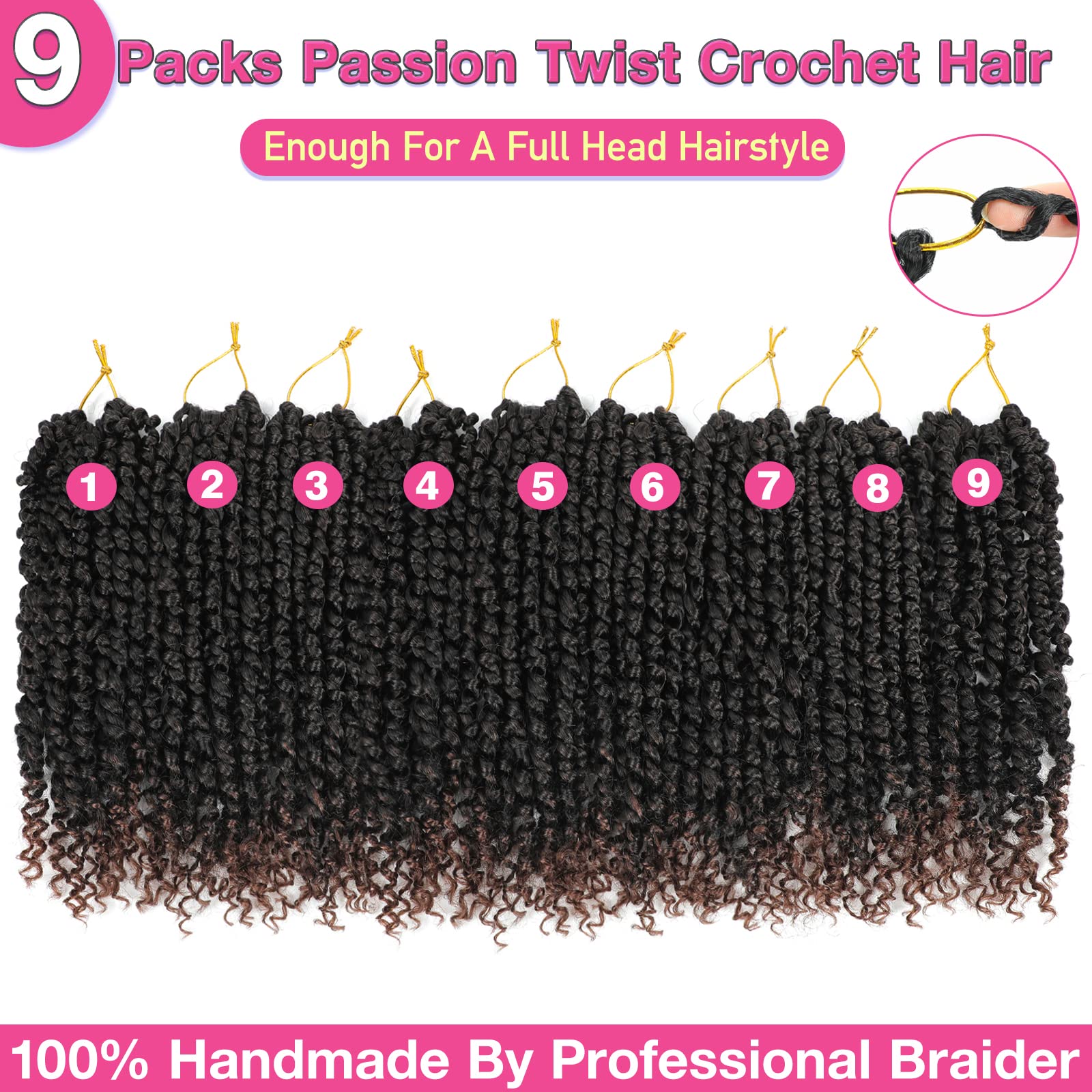 - 【Pre looped Passion Twist Hair Special Advantages】New Method, Very Light, Is About Half of The Traditional Passion Weight, Prevent Your or Your Child's Scalp From Hurting, 1.02Oz/Pack, 12Strands/Pack, 9Packs/Order, 108Strands/Order, Usually 8-9Packs Full a Head.