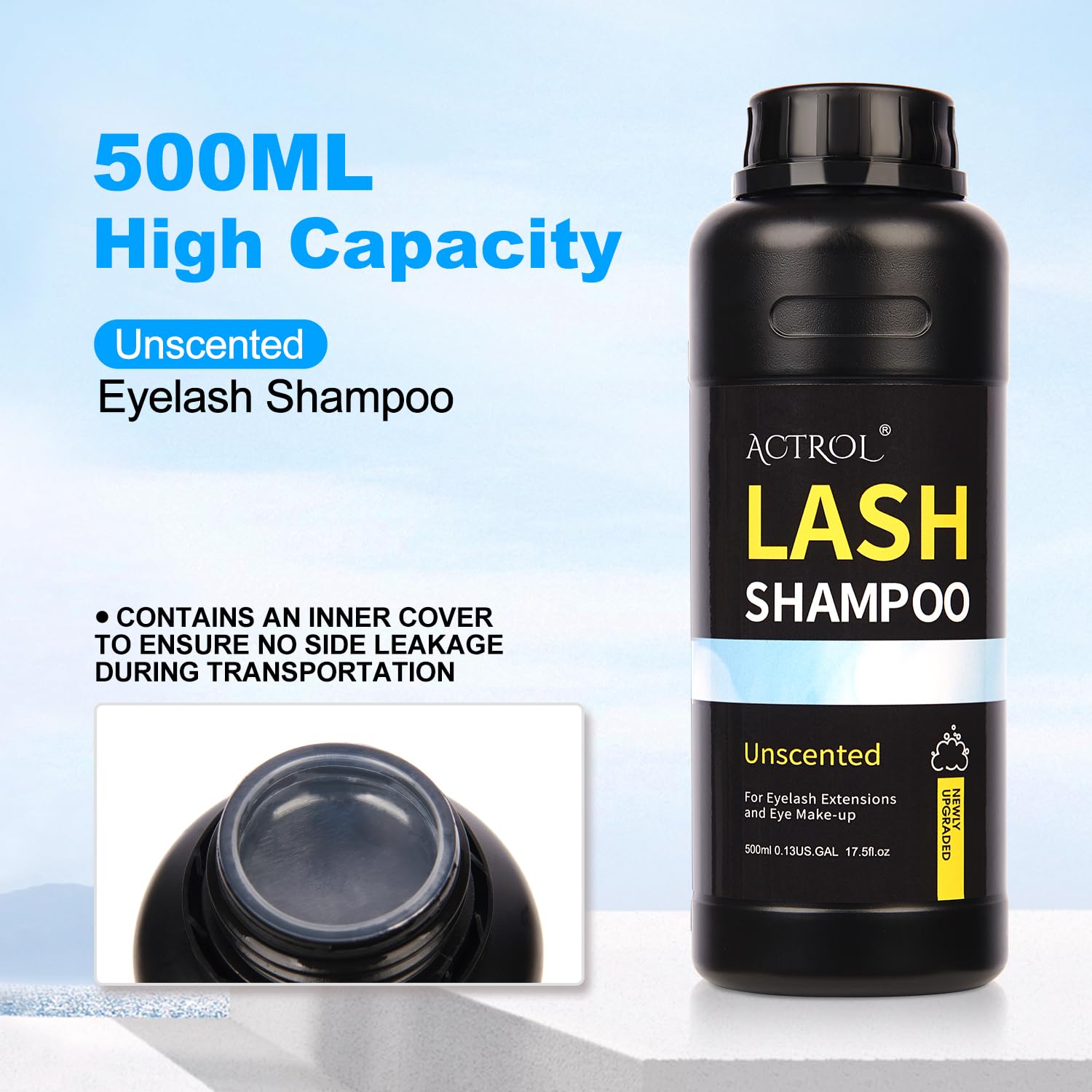 ACTROL Lash Shampoo 500ml Eyelash Cleanser Unscented Foam for Lash Wash and Salon or Home Care
