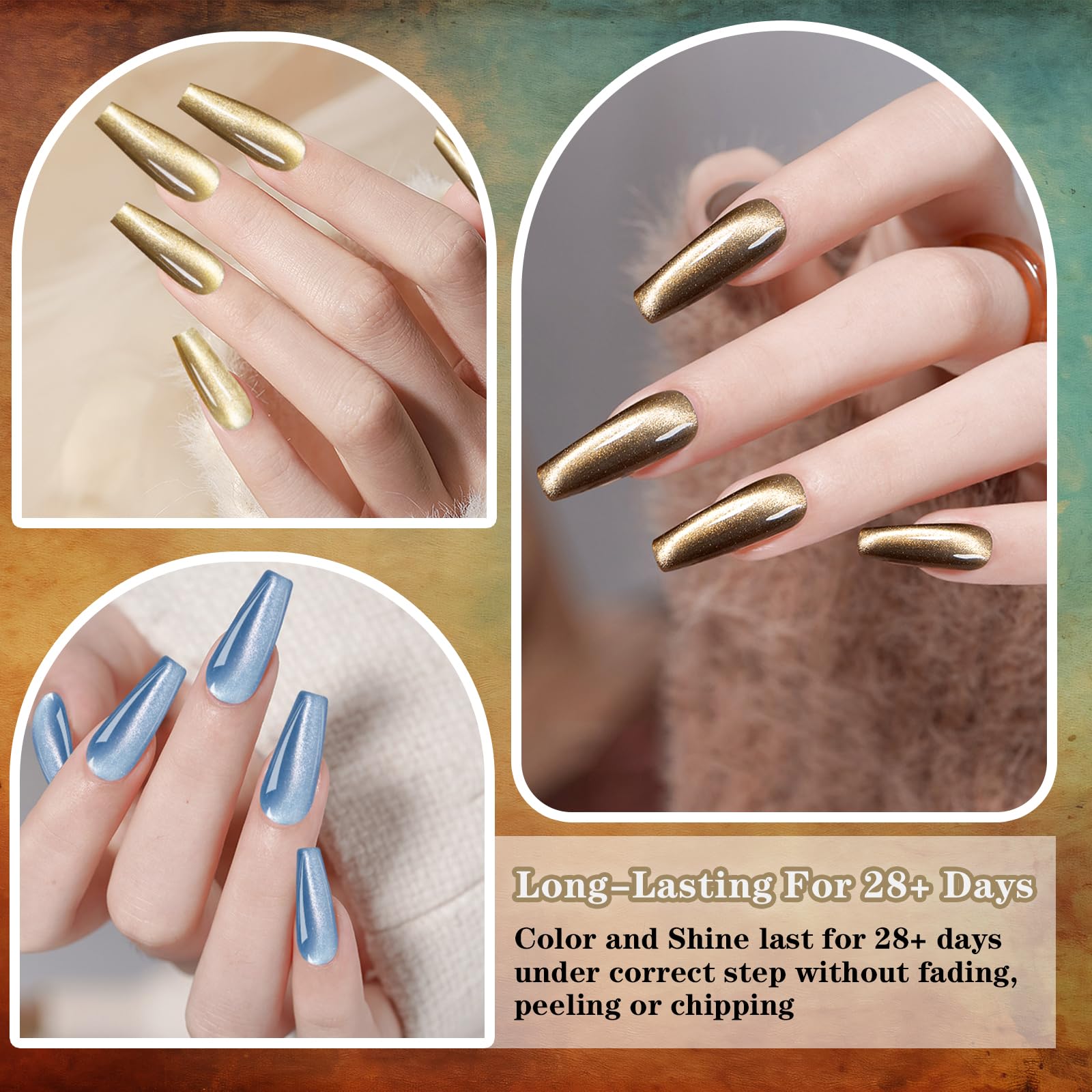 - 【New Formula】ADHERE magnetic gel nail polish set, through several researches and developments, we proudly introduce our upgraded nail polish gel produced with a new formula, which has a better magnetic powder, smoother texture, lower odor, and shiner gloss. This gel nail kit brings smooth application, and finishes with long-lasting wear of up to 28 days! Decorate your nails and make your nails more fashionable!