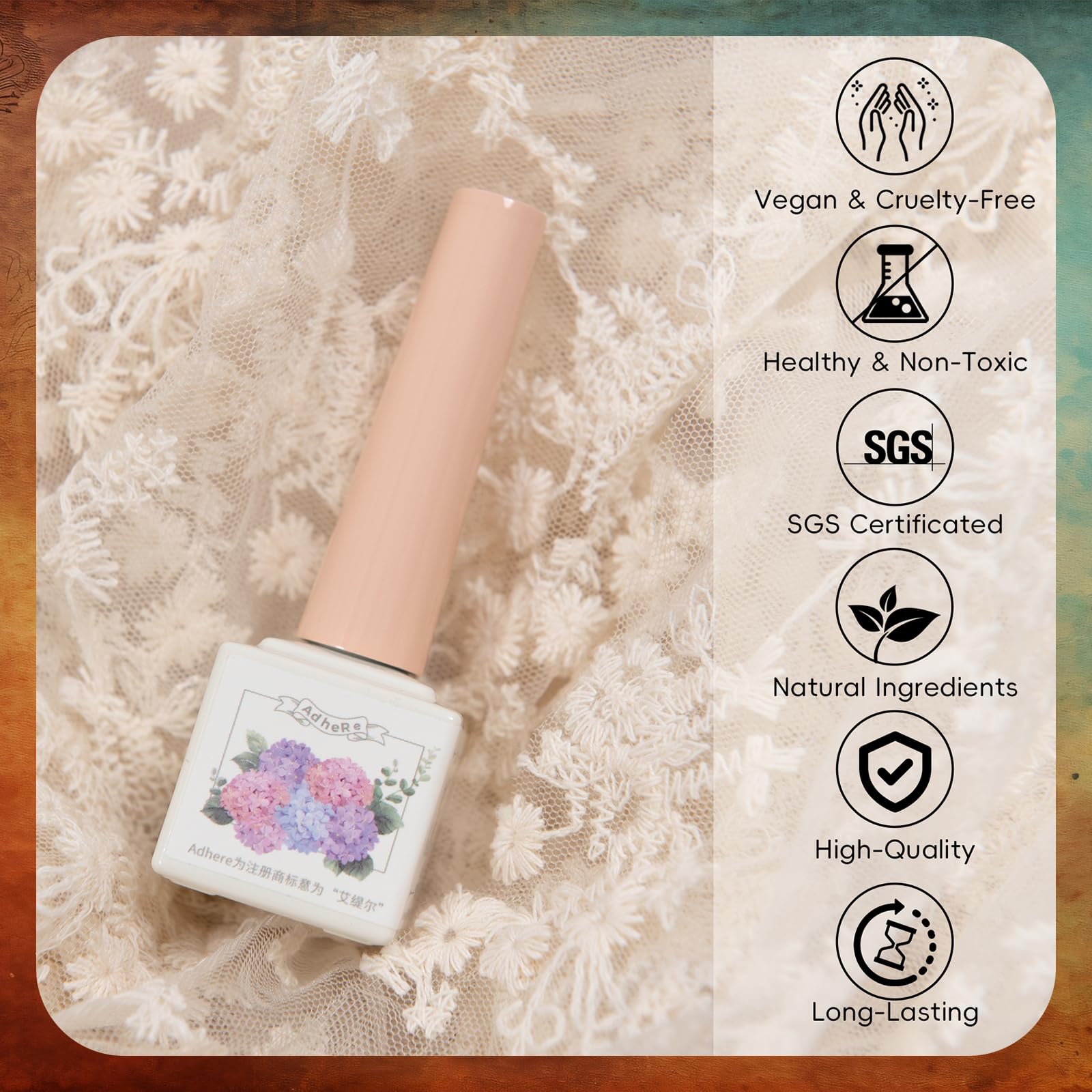 - 【Environmental & Healthy】Compared to traditional nail polish, our nail gel polishes are made of natural, eco-friendly, and cruelty-free ingredients, we put your health and safety in the first place and hope every ADHERE user gains Healthy Beauty.