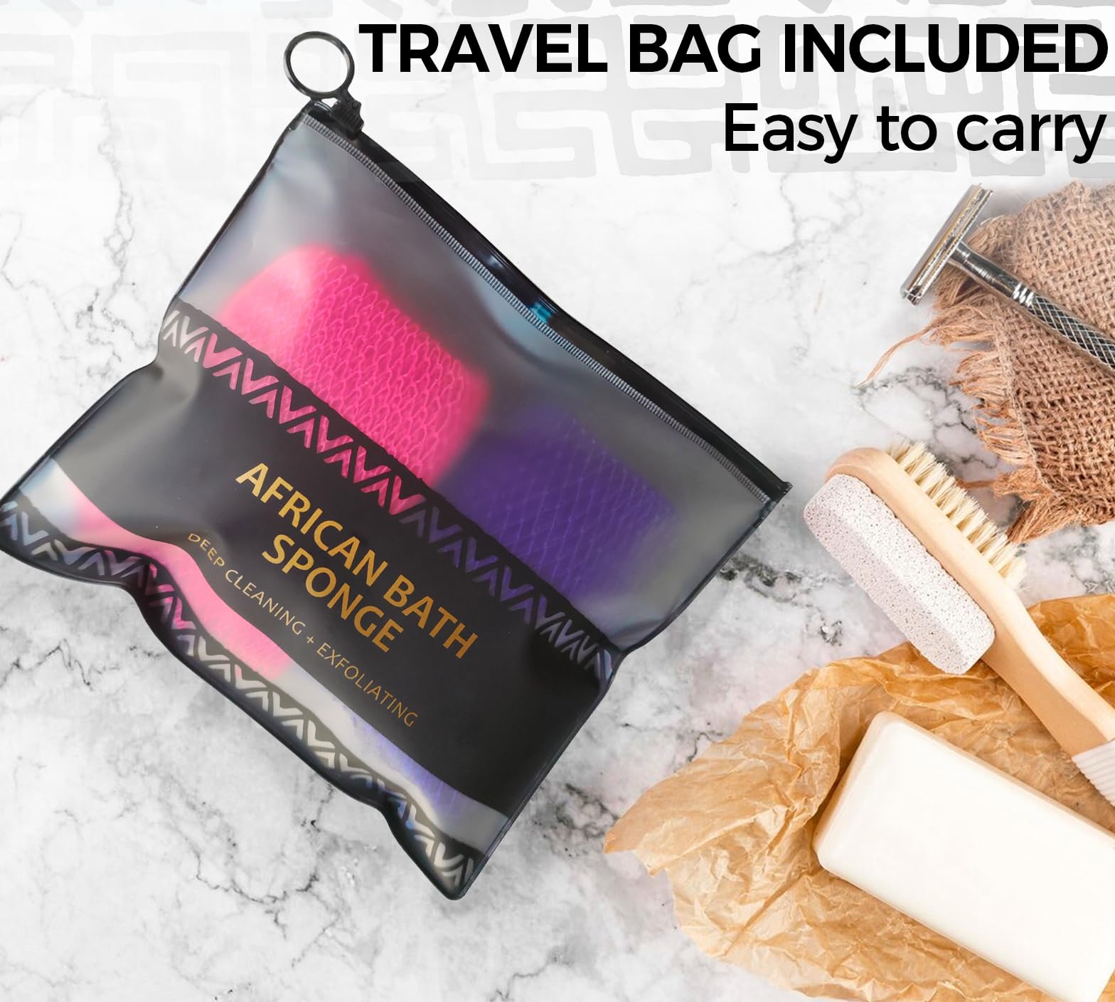 - Authentic African Net Sponge: Crafted from skin-safe and eco-friendly nylon, this is the key to a Africa's skincare ritual. It has great elasticity that produces fine foam for a better bathing experience. The close-knit net makes the exfoliator smoother, transforming your daily shower into a soft and relaxing spa experience that washes away tiredness and troubles.