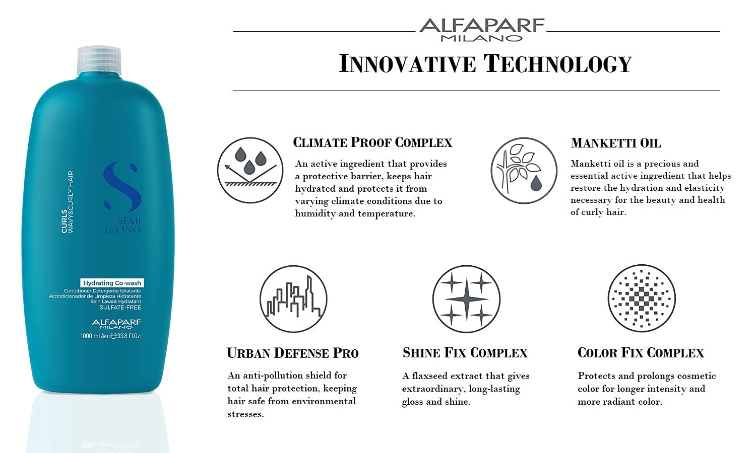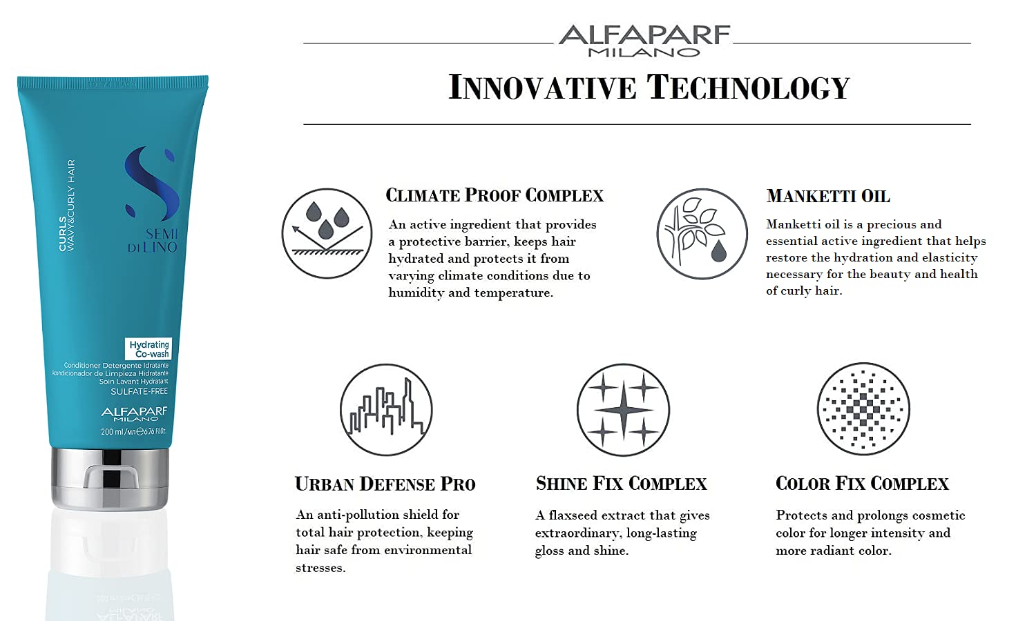 Alfaparf Milano Semi di Lino Hydrating Co-Wash | Foam-Free Curly Hair Conditioner - Shine & Frizz Control, Vegan & Sulfate Free