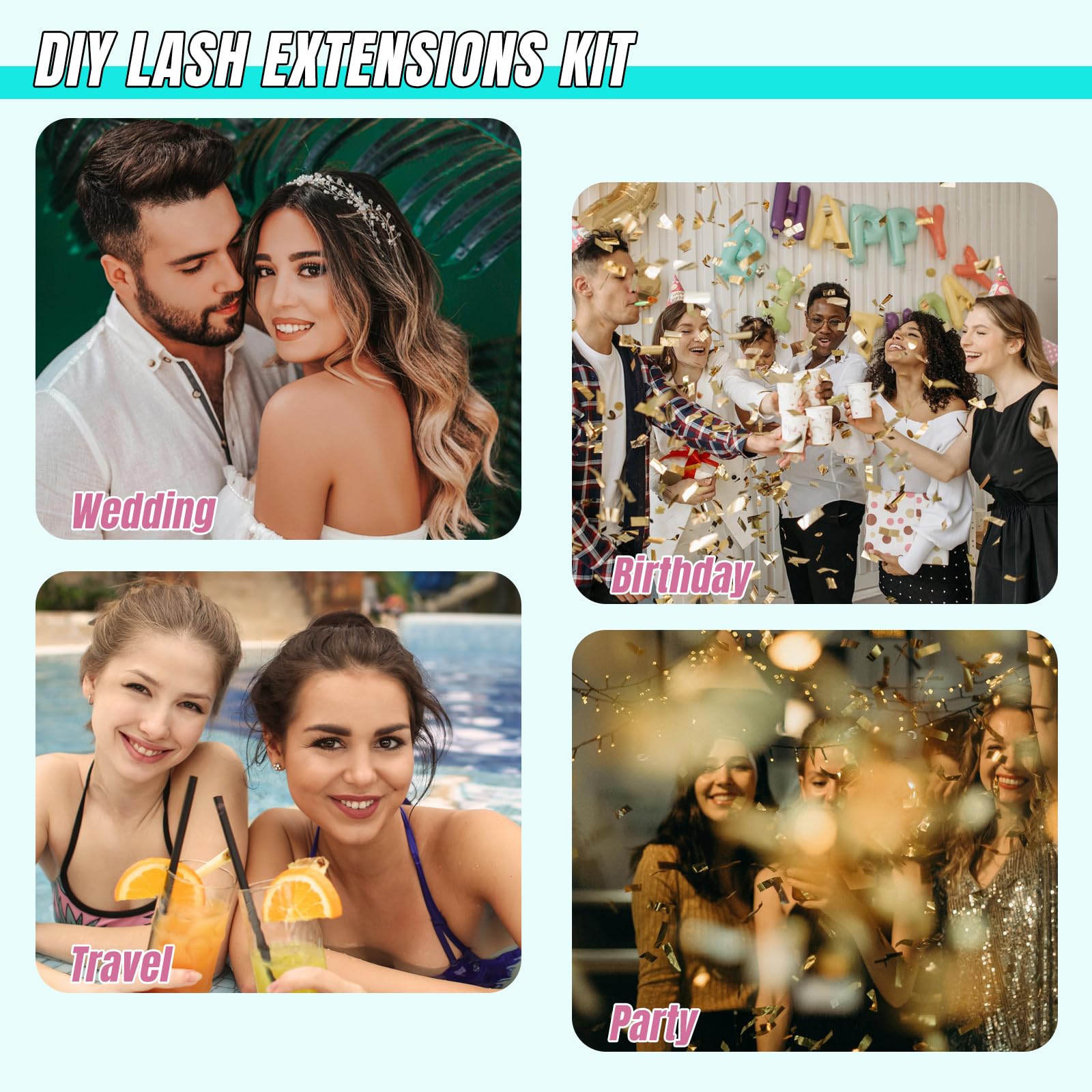 - High-quality lash clusters wispy: AMZGlRL LASH extensions kit uses 3mm ultra-fine eyelash stems. The eyelash clusters are soft, light and comfortable to wear, so you don't feel their existence at all. Easy to take up and not easy to fall apart, you can create a wispy look, cat eyes look, natural look or dramatic look according to different occasions and moods.