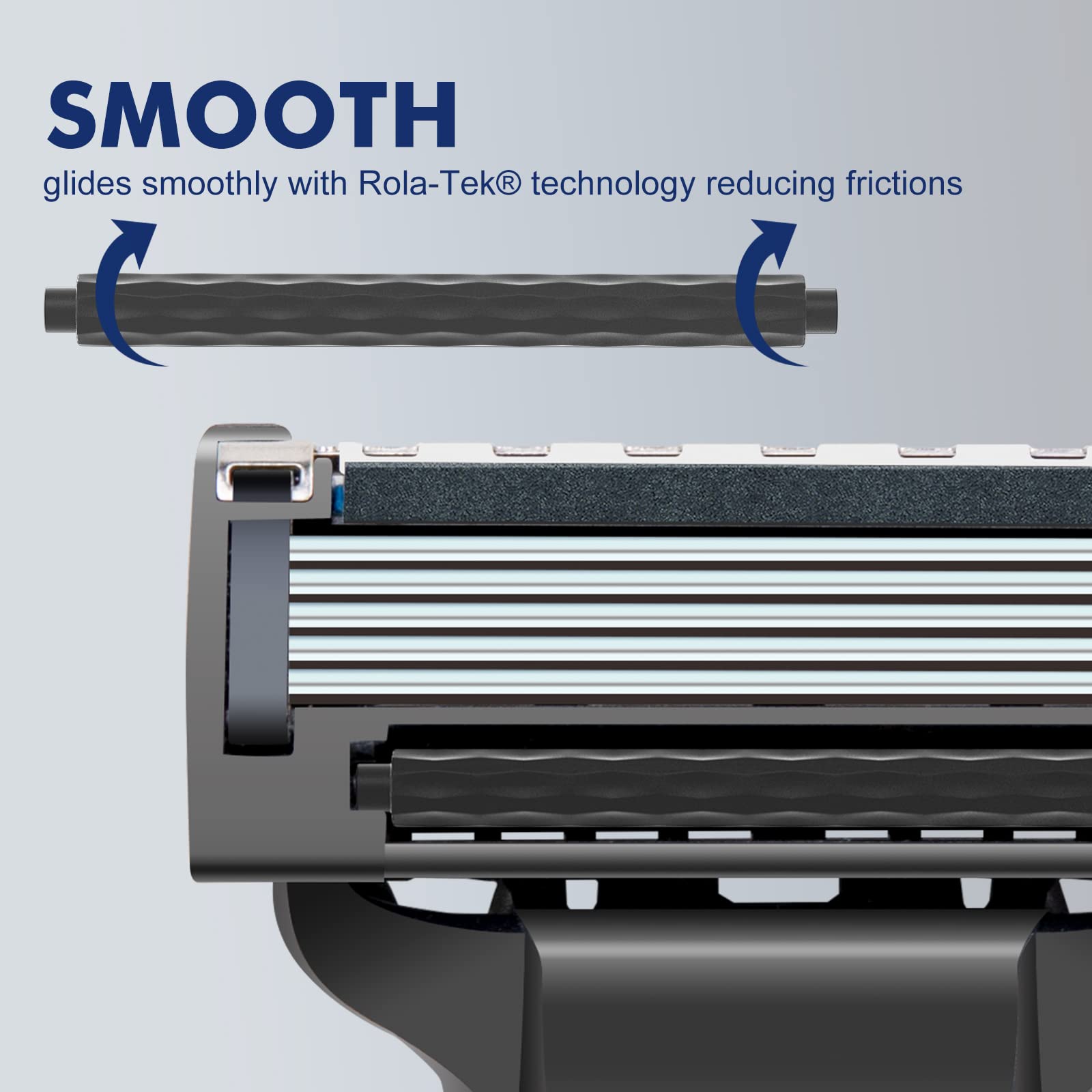 - COMFORTABLE SHAVING-The moisture strip releasing vitamin E to smooth and comfort your skin and the Rola-Tek technology reducing the friction, the razor can glide smoothly on your face for a comfortable shaving experience.