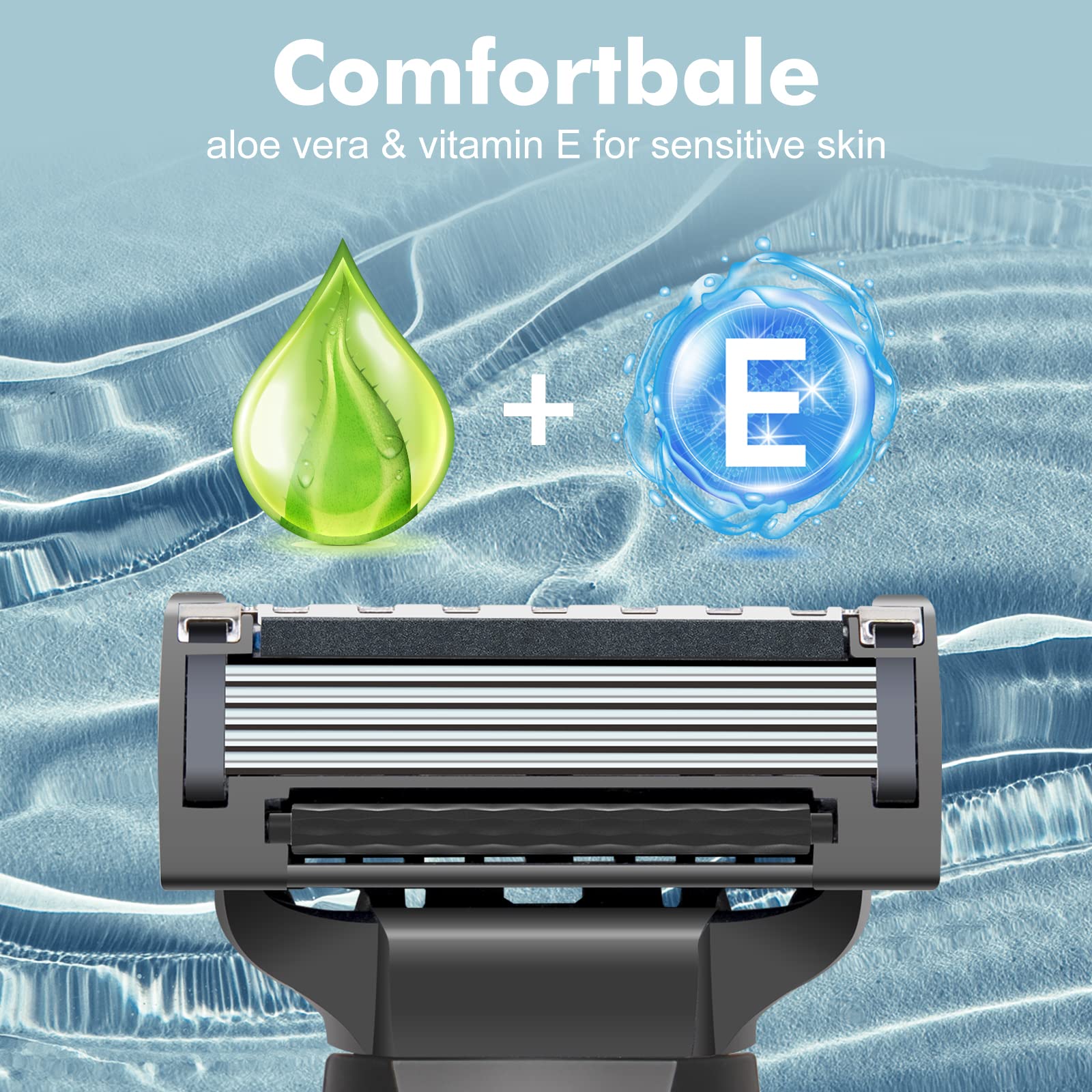 - ALL IN ONE KIT-This men razors kit comes with 1 handle and 4 blade refills, 1 blade cover. It also includes a shaving gel for a close and more comfortable shave. Comes with everything, good for travel and as a gift.