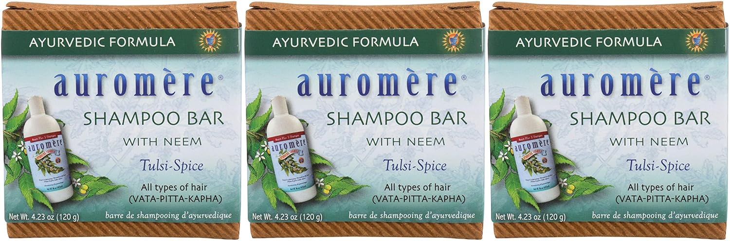 Auromère Ayurvedic Shampoo Bar with Neem, Tulsi-Spice (4.23 oz)