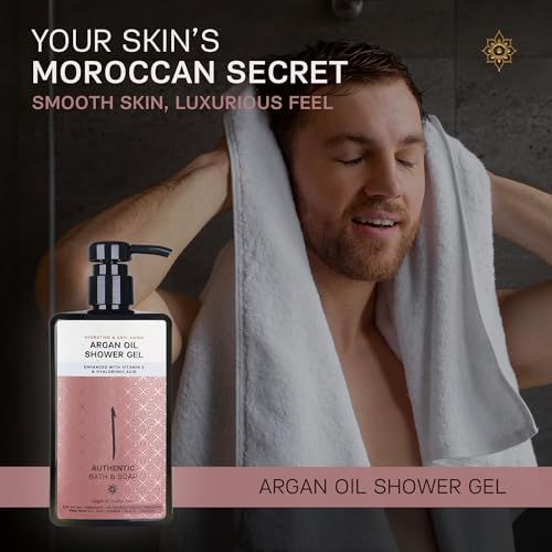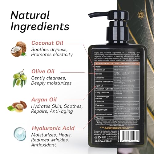 AUTHENTIC BATH & SOAP Organic Argan Oil Moisturizing Mens Body Wash – Moroccan Oil Shower Oil with Vitamin E & Hyaluronic Acid | Sulfate & Paraben Free | Cruelty-Free & Vegan | 16.9 Fl Oz