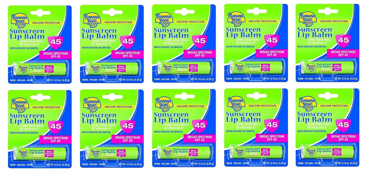 Banana Boat Aloe Vera Lip Balm SPF 45, 0.15 Ounce (10 Pieces)