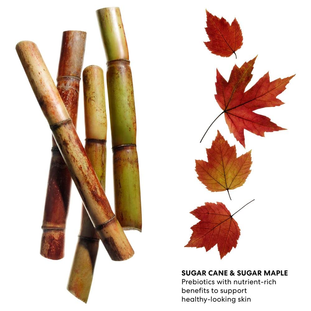 • Prebiotics: Sugar Cane & Sugar Maple support healthy-looking skin
