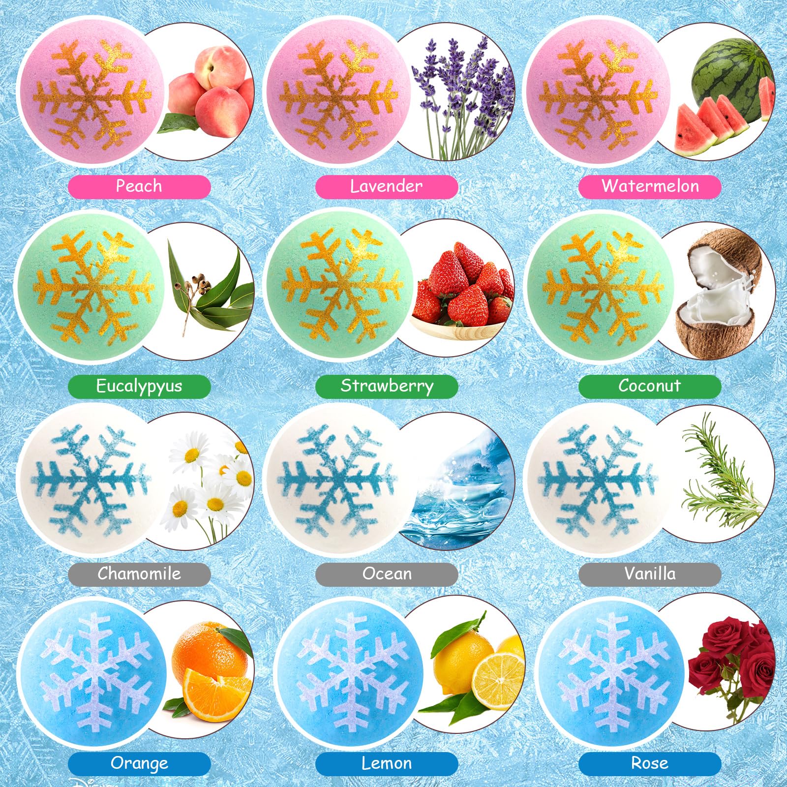 - 12 Different Scents - Each bath bomb set contains different colors. When we put bath bombs really create a colorful and wonderful world for our kids bath. They moisturize to leave your skin soft & silky, cleanse to make your body fresh & light, and soothe to let you feel refreshed.