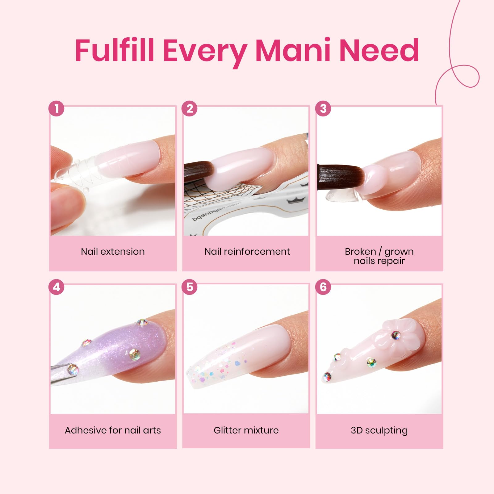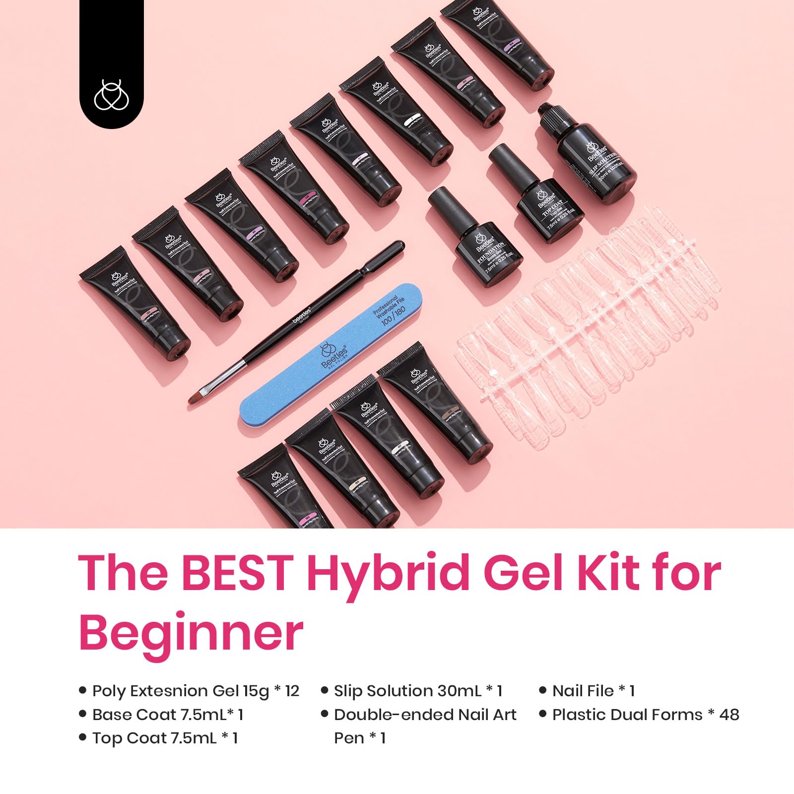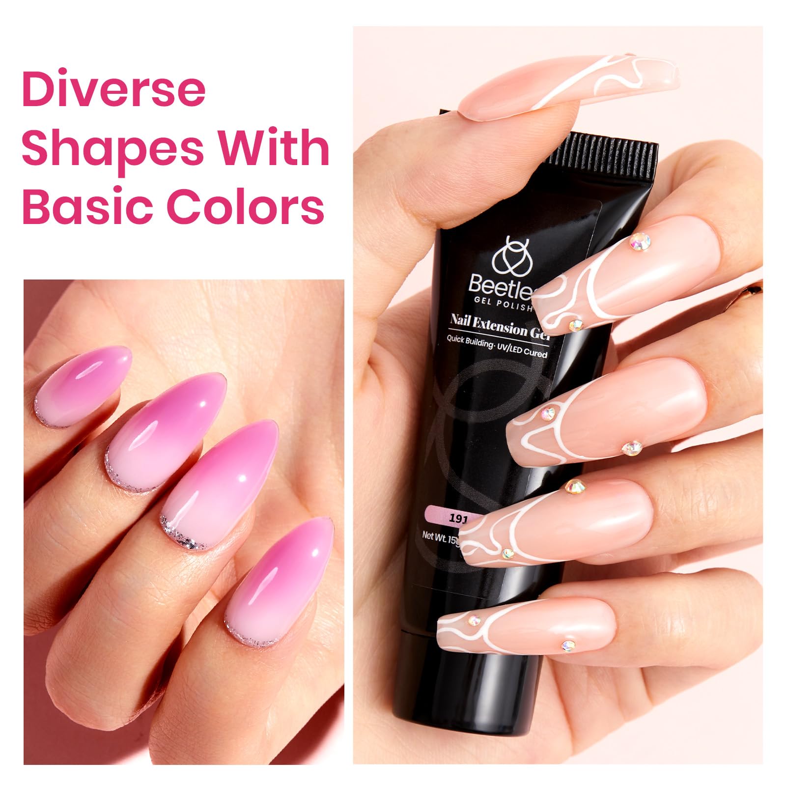 beetles Gel Polish 12 Colors Poly Nail Extension Kit Clear Jelly White Glitter Nude Pink Purple Builder Manicure Enhancement Starter Set Need Cure UV Led Nail Lamp Spring Gifts for Women Girls