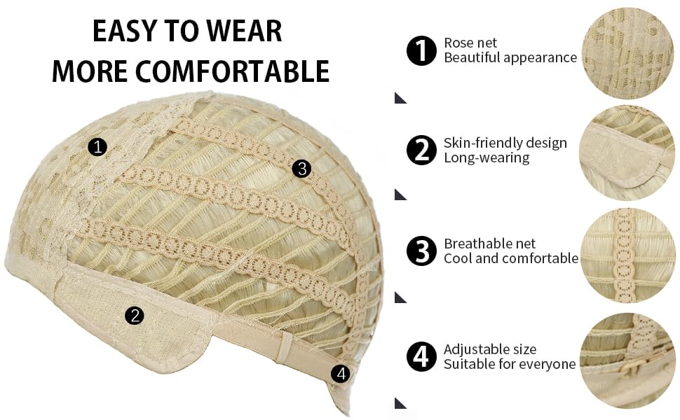 4.All our wigs are with adjustable inner cap net, one size fits most.