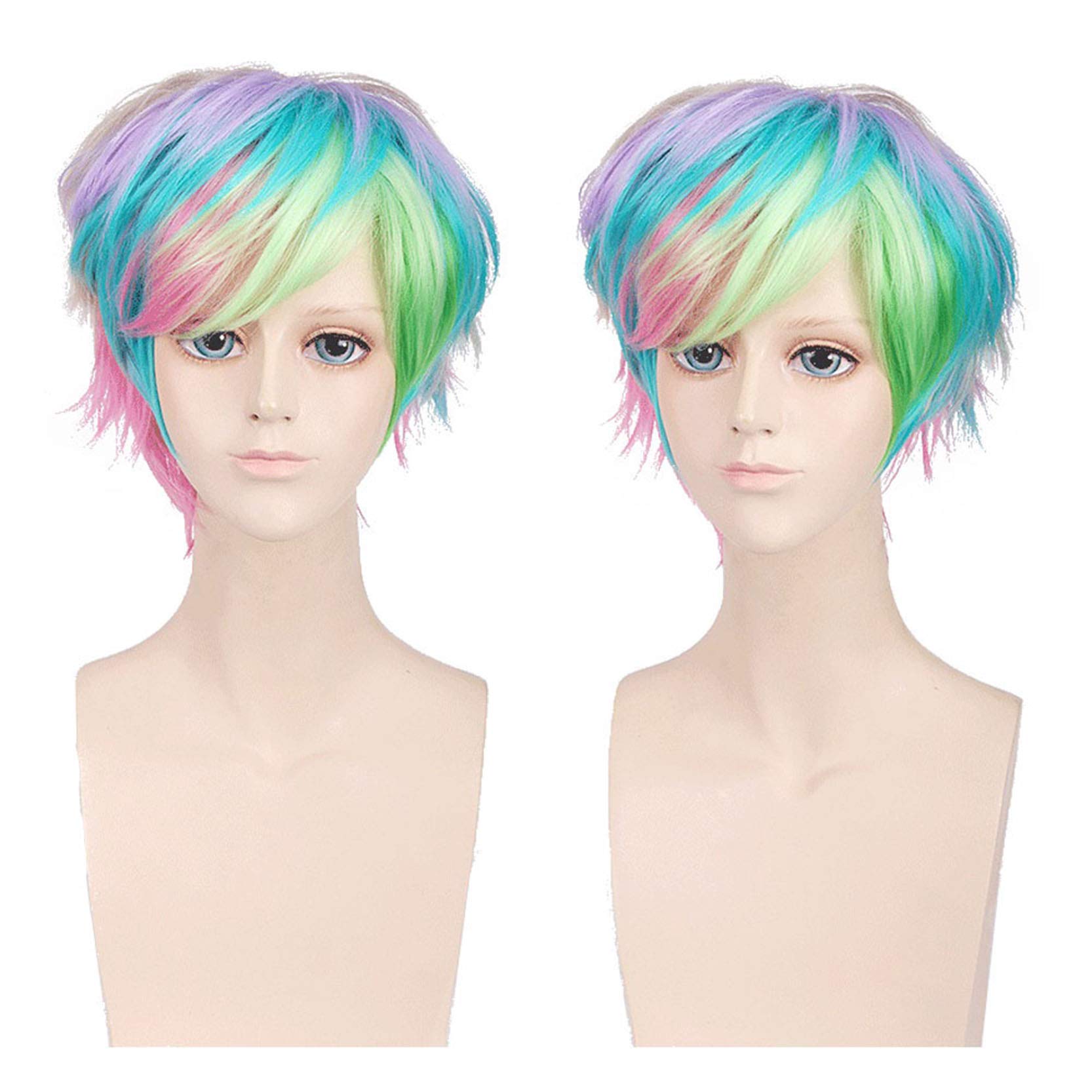 BERON Women's Rainbow Short Straight Bob Wig Rose Net with Wig Cap