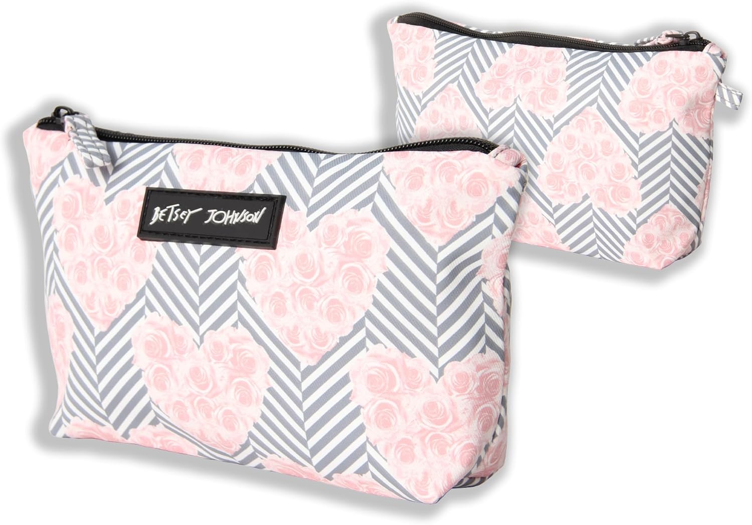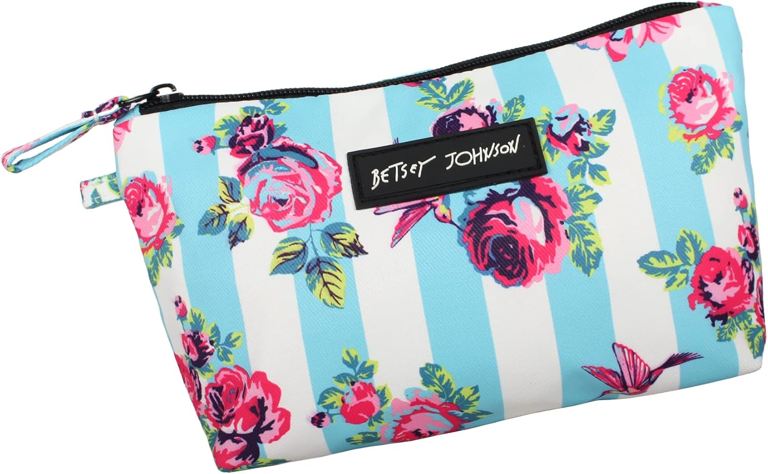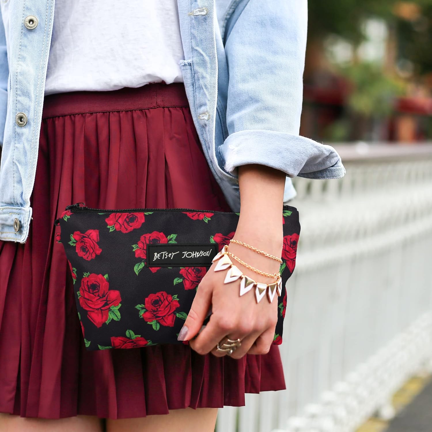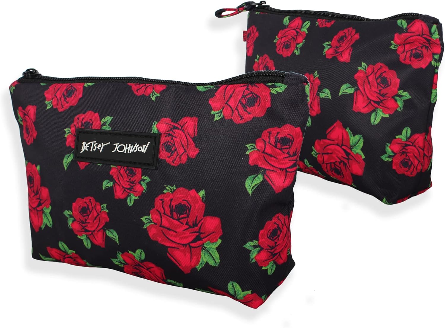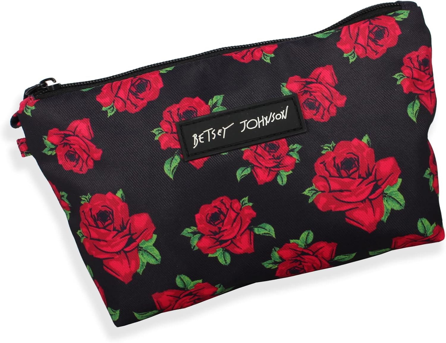 Betsey Johnson 8.5 Inch Zipper Cosmetic Pouch Small Toiletry Bag–Lightweight Durable Polyester Organizer with Inner Zipped Pocket Good For Makeup Accessories and Travel Needs (Covered Rose)