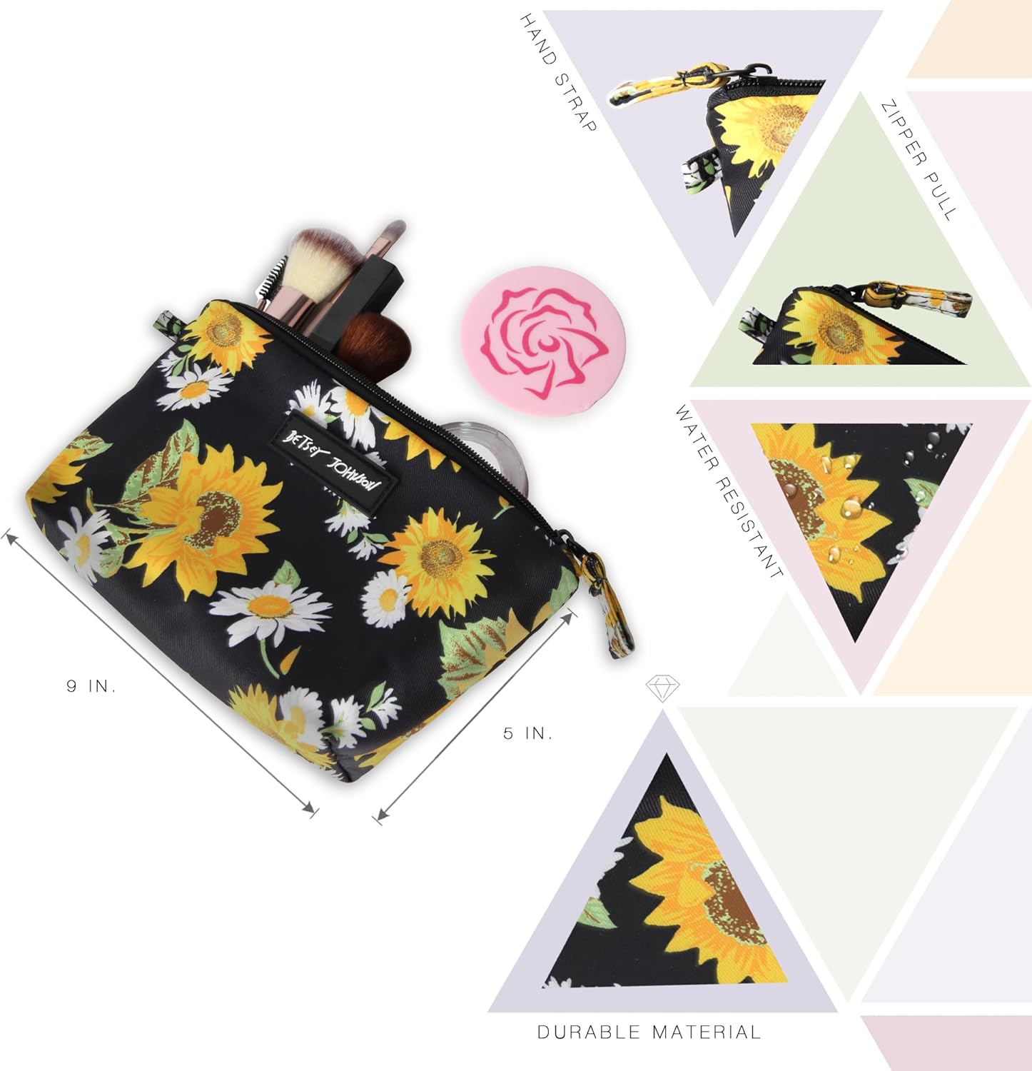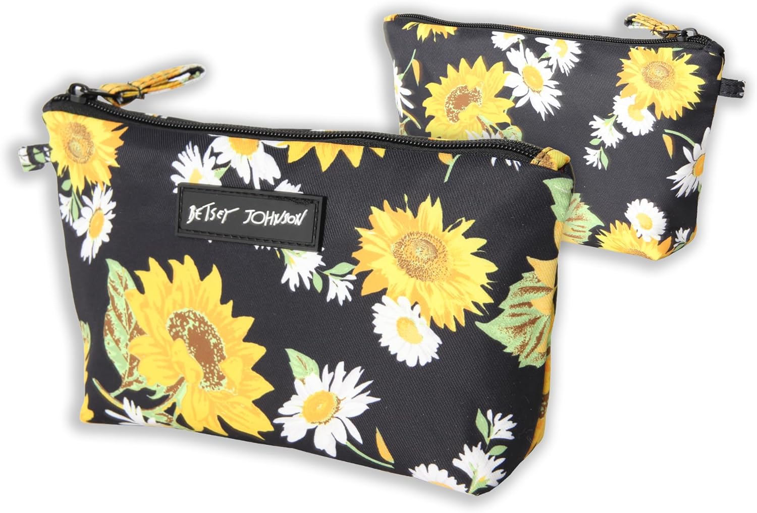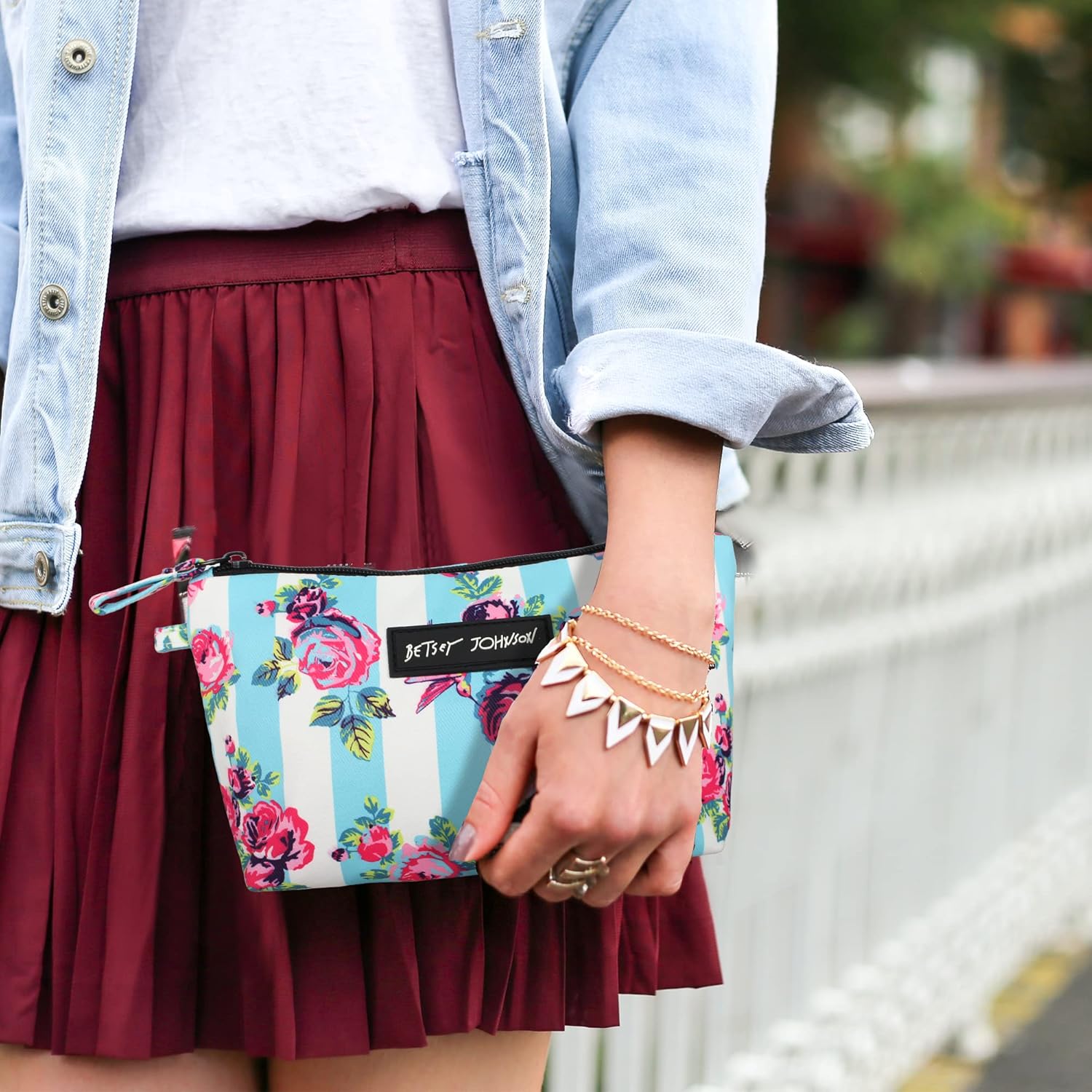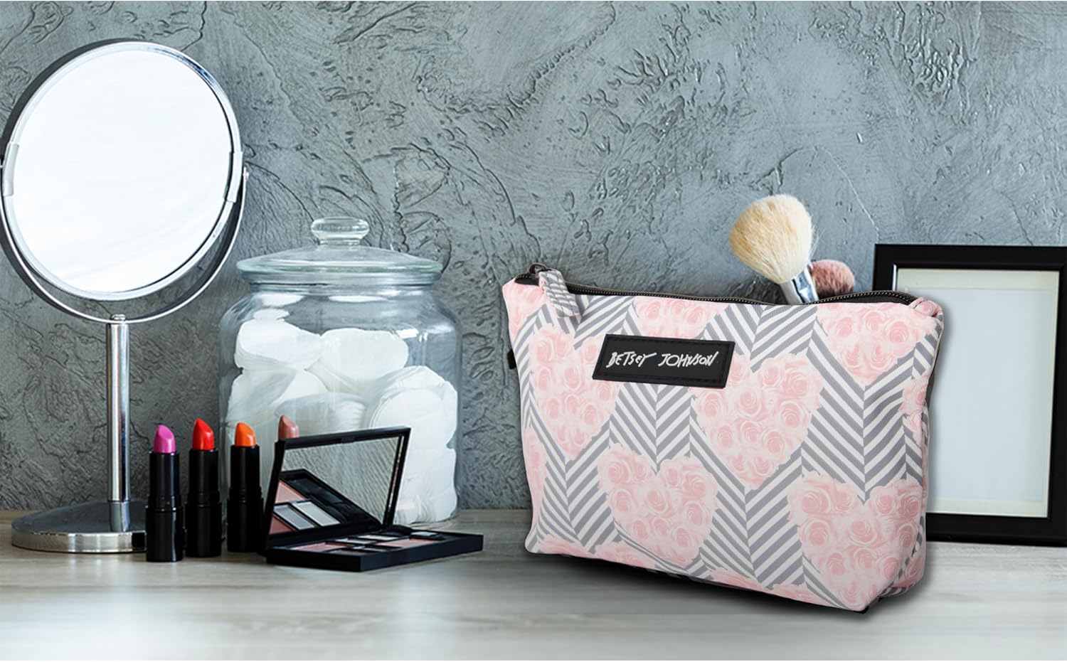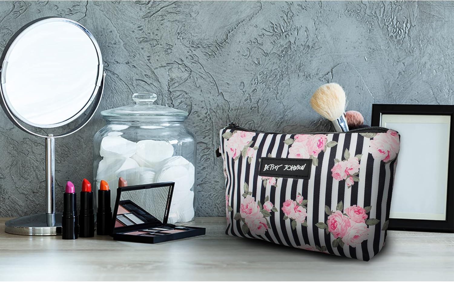 Betsey Johnson 8.5 Inch Zipper Cosmetic Pouch Small Toiletry Bag–Lightweight Durable Polyester Organizer with Inner Zipped Pocket Good For Makeup Accessories and Travel Needs (Covered Rose)
