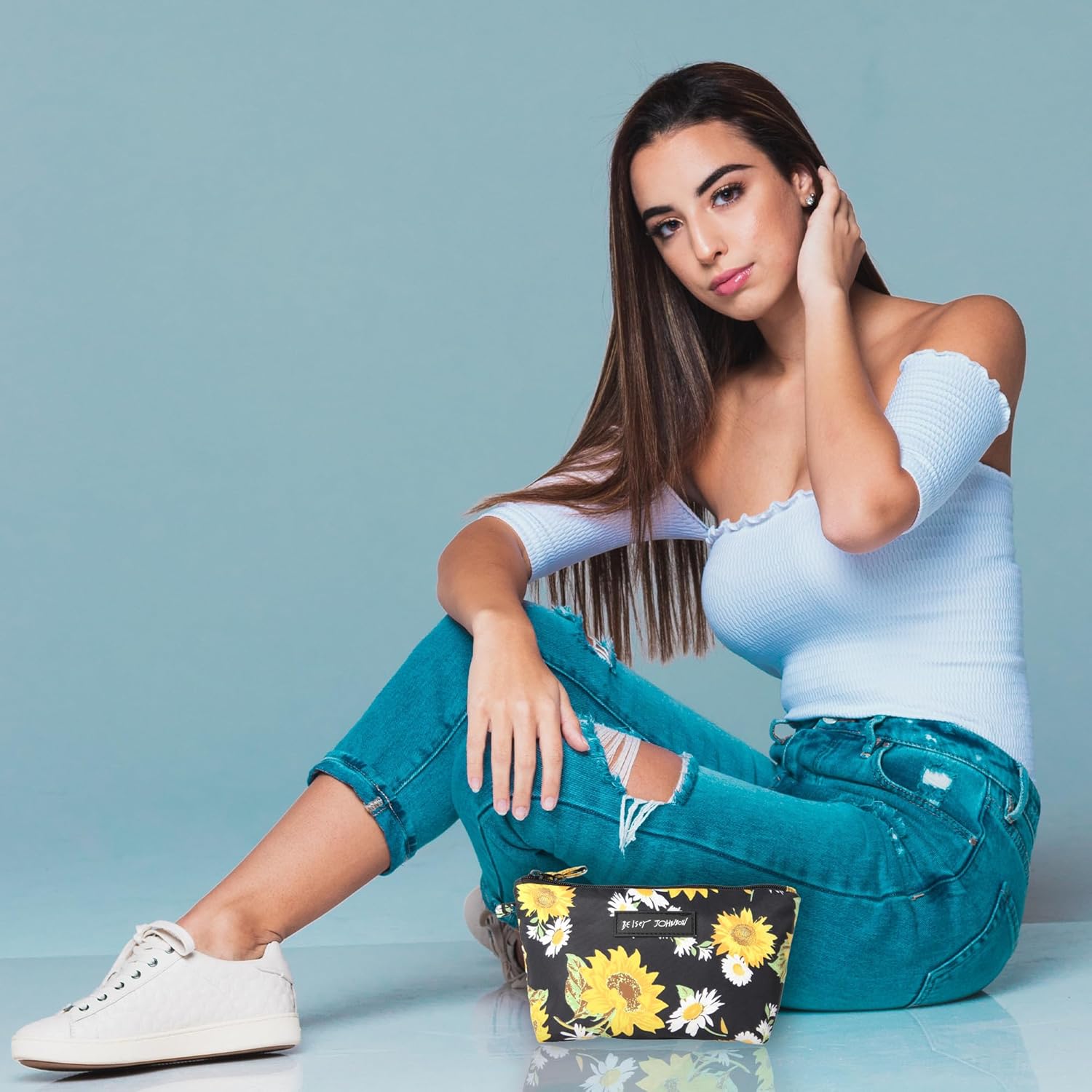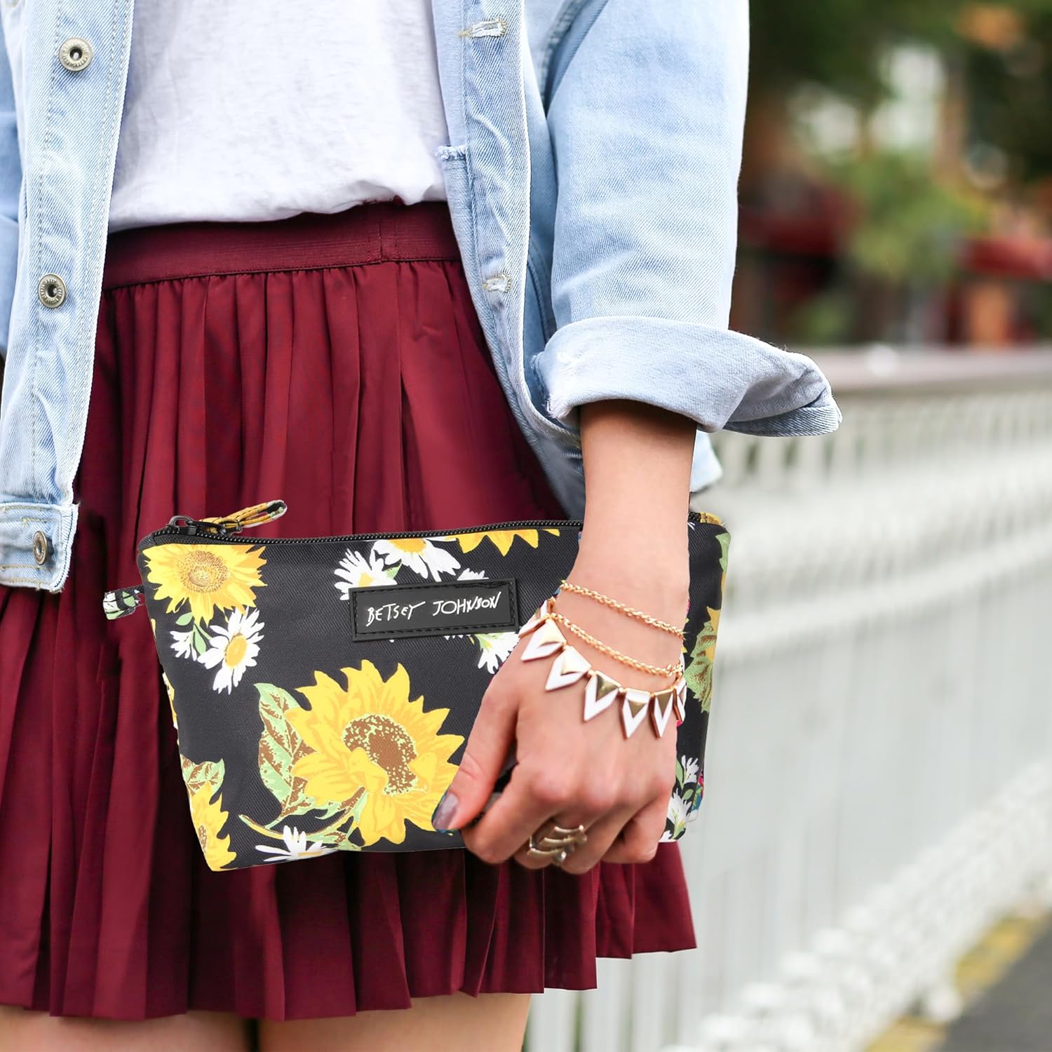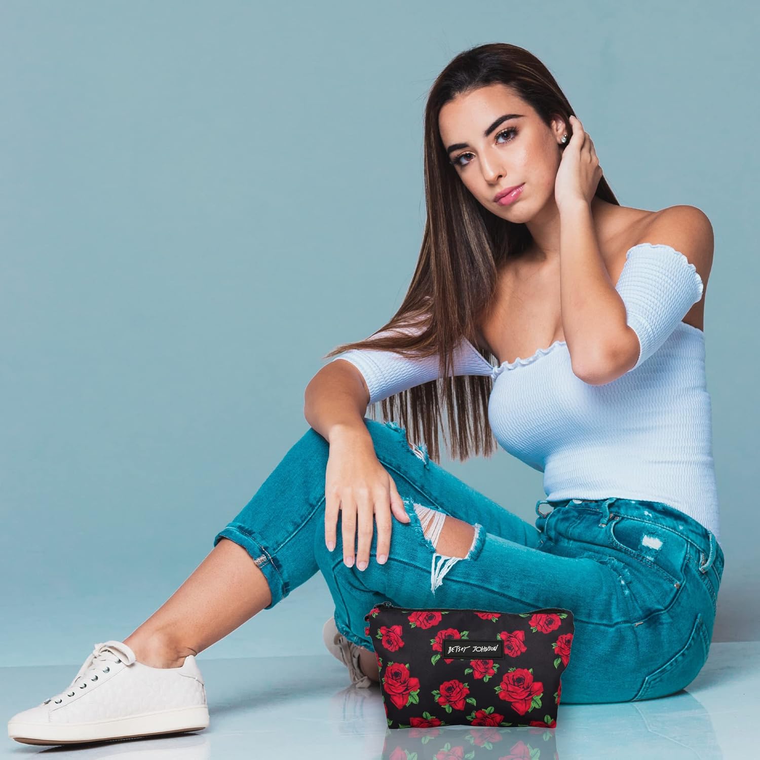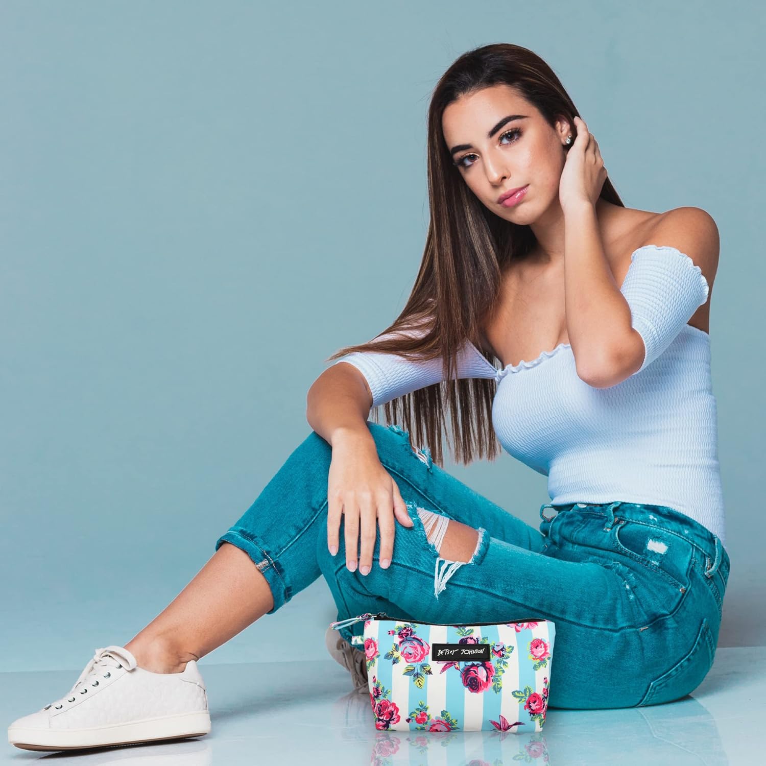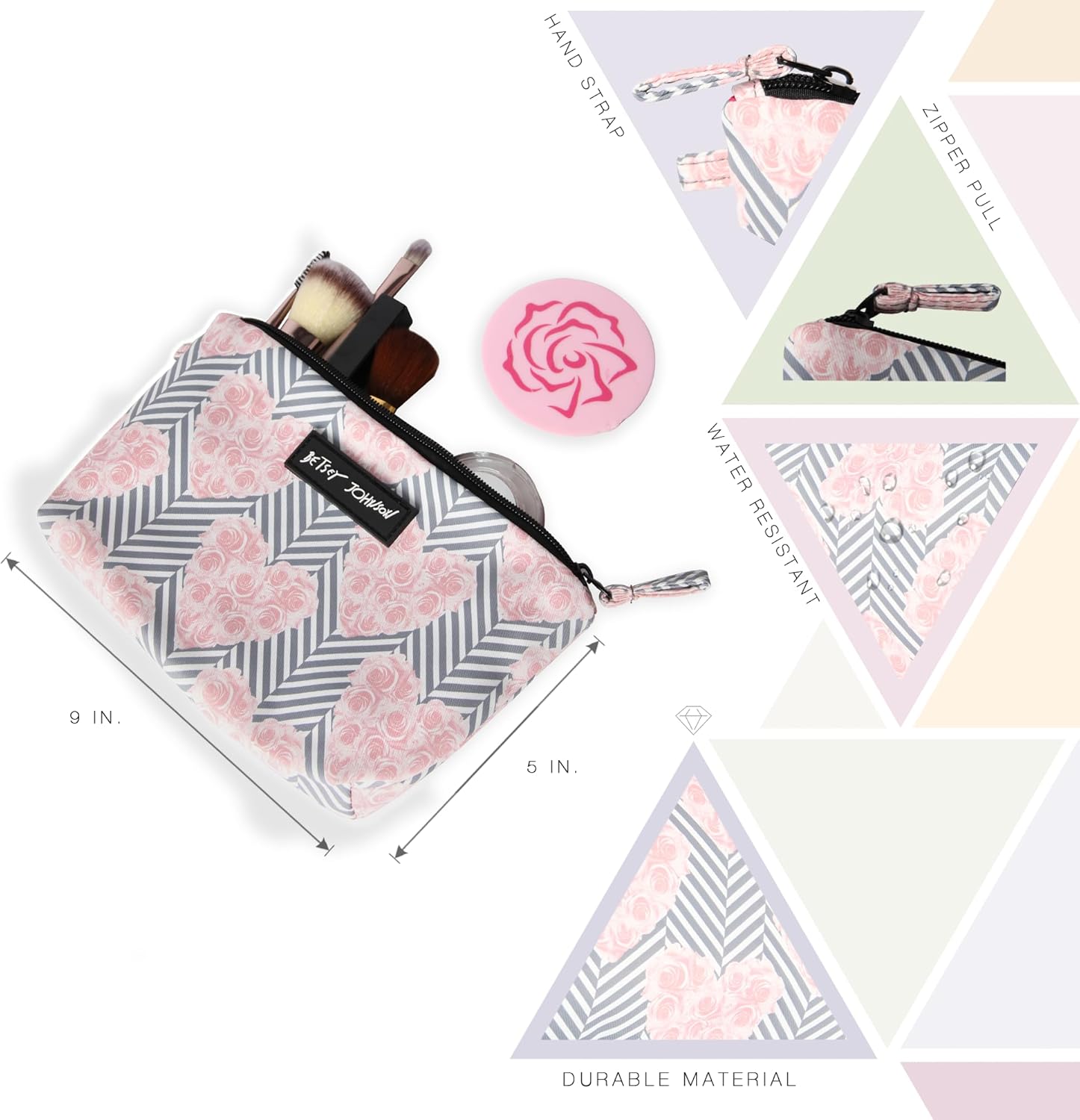 Betsey Johnson 8.5 Inch Zipper Cosmetic Pouch Small Toiletry Bag–Lightweight Durable Polyester Organizer with Inner Zipped Pocket Good For Makeup Accessories and Travel Needs (Covered Rose)