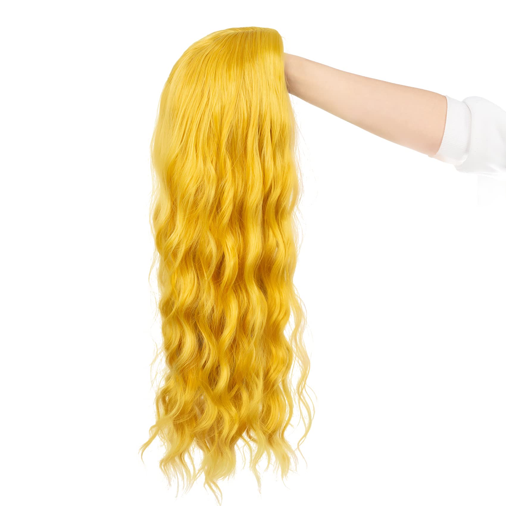 Beweig Yellow Wig for Women Long Curly Wavy Cute Colorful Wigs Middle Part Synthetic Hair Wigs Halloween Cosplay Daily Party Wigs (25 inch)