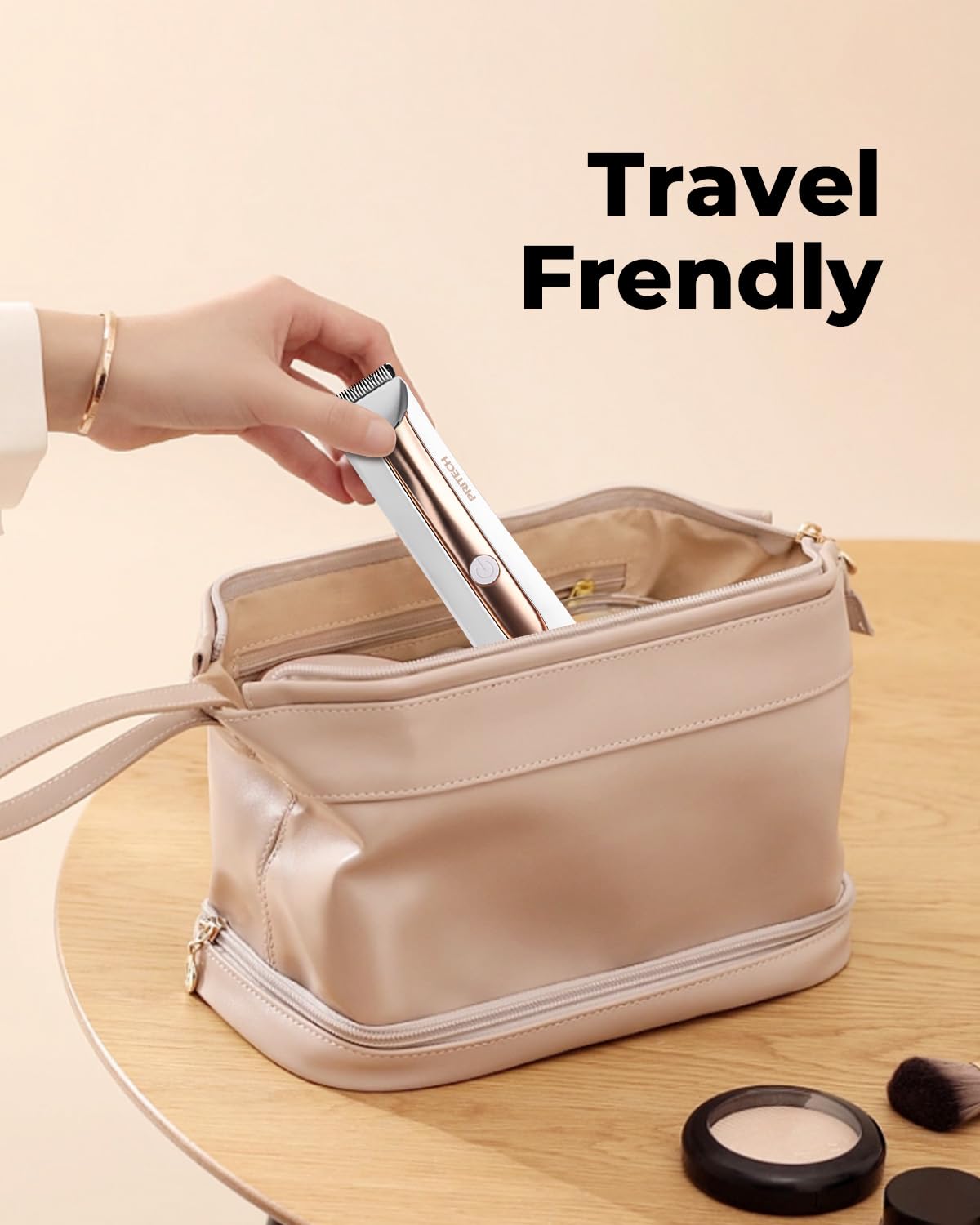 - Compact & Portable with Travel Lock - Take your body shaver game on the road with our compact, travel-friendly bikini trimmer. Its sleek design easily fits into your luggage or gym bag, and the built-in travel lock feature prevents accidental activation while traveling, keeping your device safe and ready when you need it (press and hold buttons for 3 seconds to turn on or off) with our Bikini Trimmer with Razor.