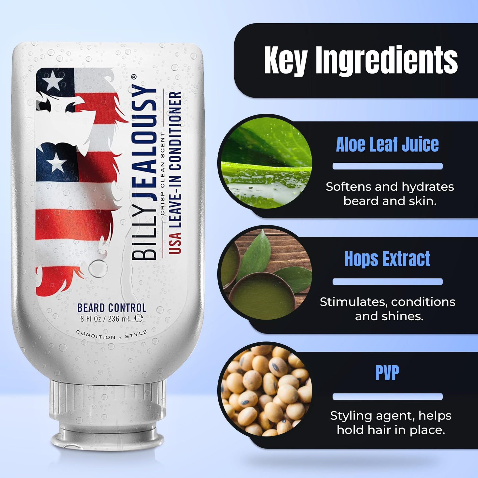 Billy Jealousy Original Beard Control Leave In Beard Conditioner for Men with Aloe Leaf Juice and Jojoba Seed Oil, Softens Hair and Skin, Light Hold with Matte Finish, 8 Fl Oz