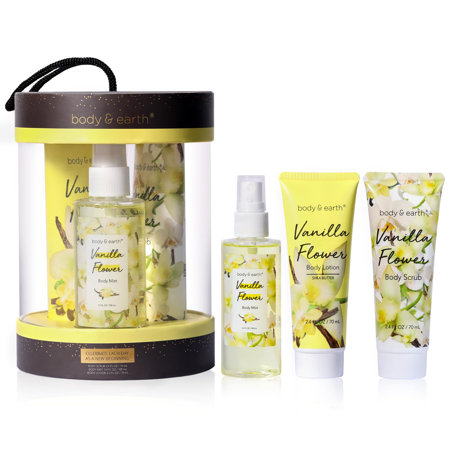 BODY & EARTH Body Mist Gift Set - Vanilla Spa Gifts for Women, Perfume, Body Lotion, and Body Scrub - Perfect Birthday Gifts for Moms, and Special Occasions,Unique Gift Ideas for Her