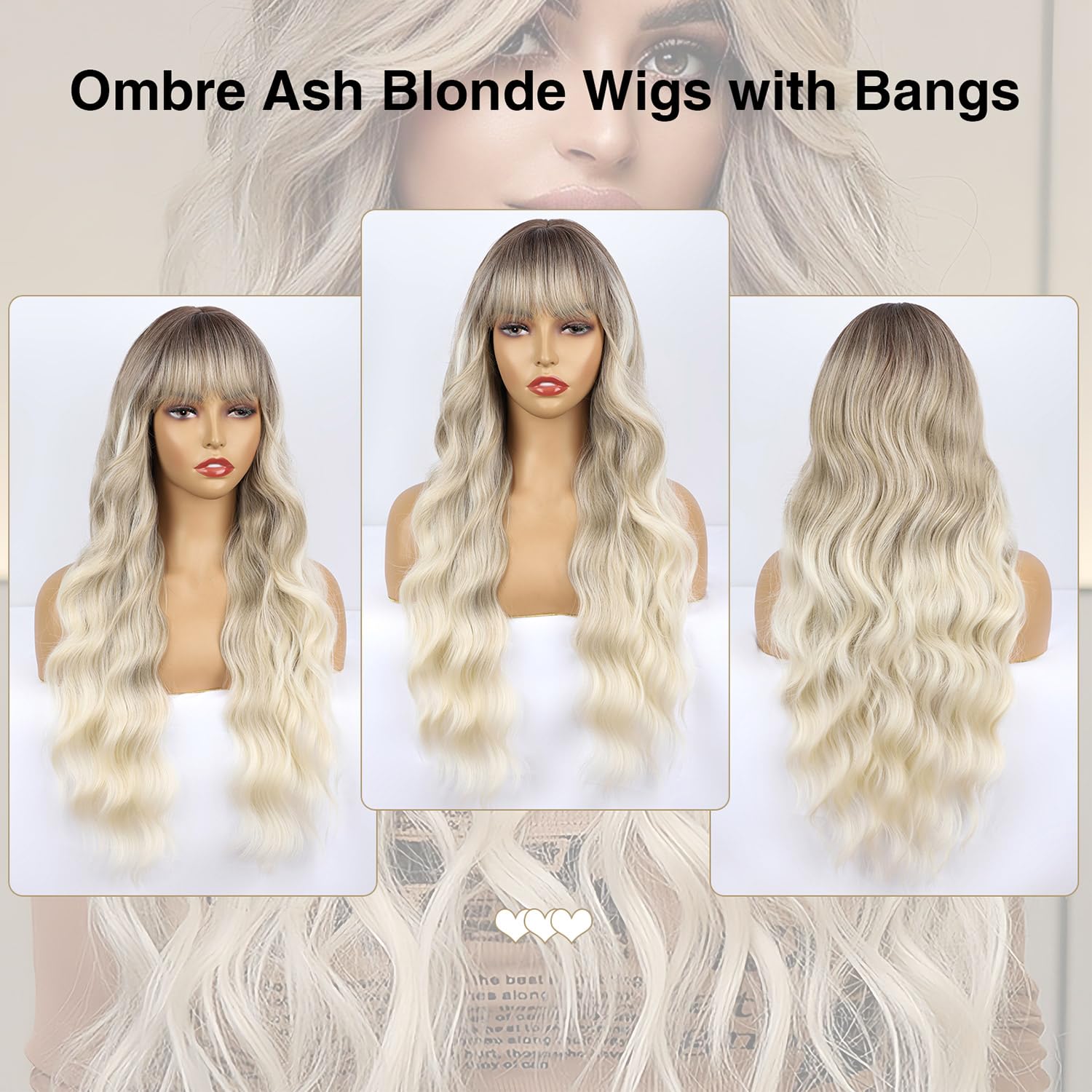 - đăOccasionsă: Ombre Ash Blonde wig with bangs is perfect for Daily Use, parties, weddings, dating, Halloween, gifts for friends and certain themed performances, fashion and attractiveness, adding more charm and fun. This wavy wig with bangs will be a good choice for all occasions.