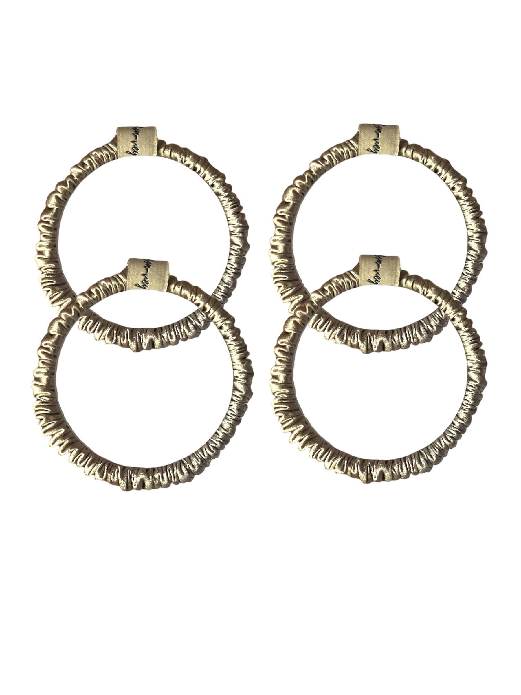 BONVEY - The Skinny Scrunchie - DARKEST BLONDE 100% Pure Mulberry Silk. Suited for all types. (Set of 4)