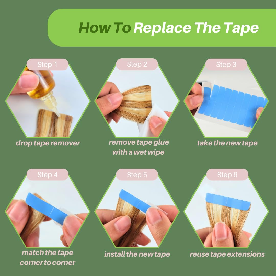 - Reusable And Invisible Tape: Double-Sided Tape with High Stickness, Never Slip Or Become Losse Easily. Can Be Reused for Over 3 Months with Replaced Tapes We Provide In Box. Avoid Oily Hair Care Products And High Temperature Near The Adhesive Tapes Can Avoid Tapes Not Sticking