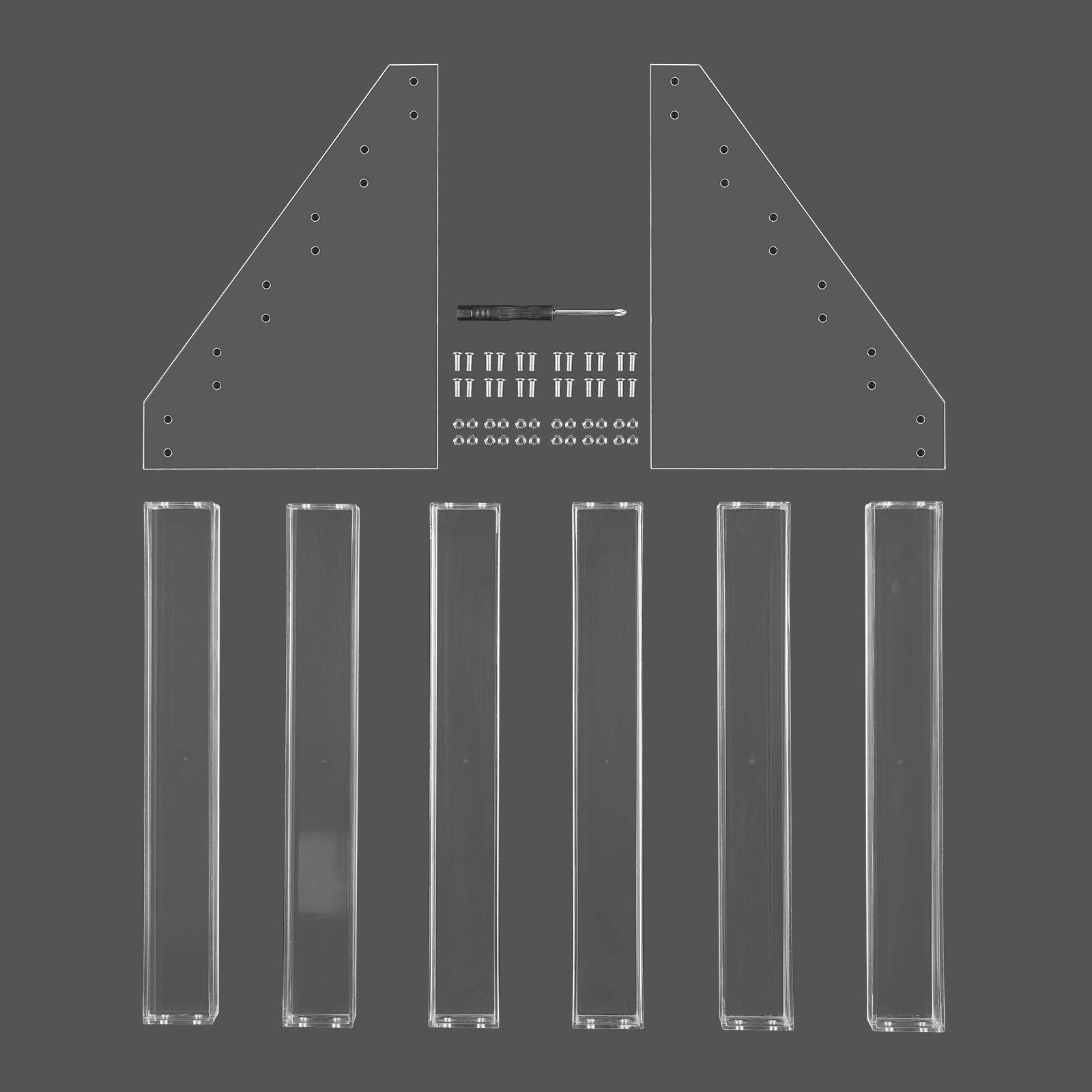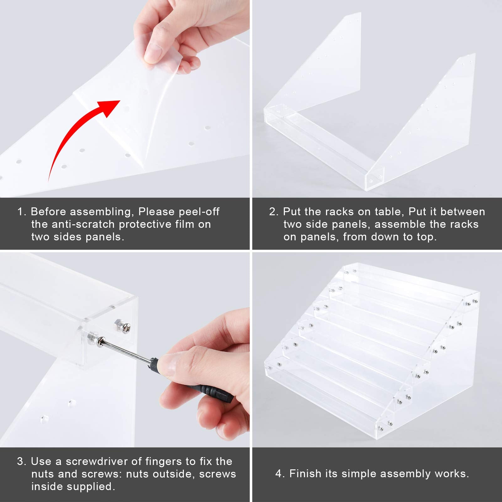 - COLOR: Clear, 6 Pieces of Individual Shelve. Assembly required, Whole Size: 12.4*9.7*7.08inch, Each Tier Size:12.2*1.7*1.1inch(Inner width is 1.45inch); Acrylic Nail Polish Holder Holds 56-96 Bottles(Depends on the size of nail polish).