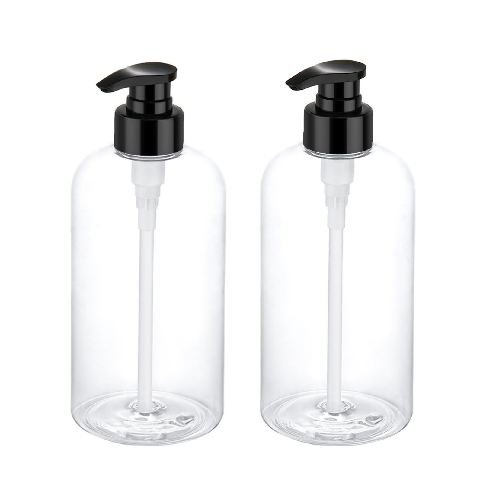 Bynccea 2 Pack Empty Plastic Pump Bottles Dispenser 16 oz / 500 ml Refillable Shampoo Bottles with Pumps Cylinder Shampoo Lotion Hand Pump Bottle Liquid Container for Bathroom Shampoo and Body Wash
