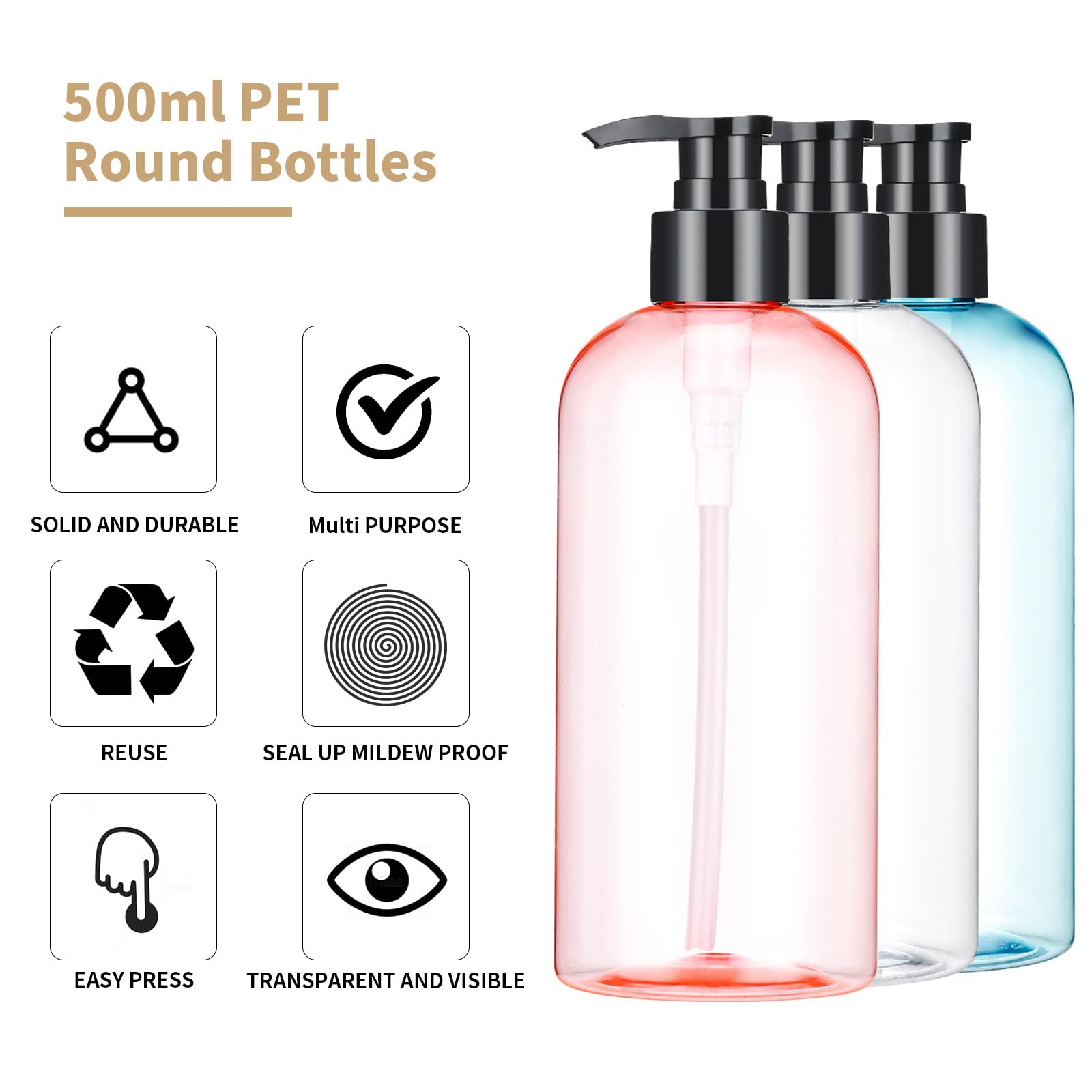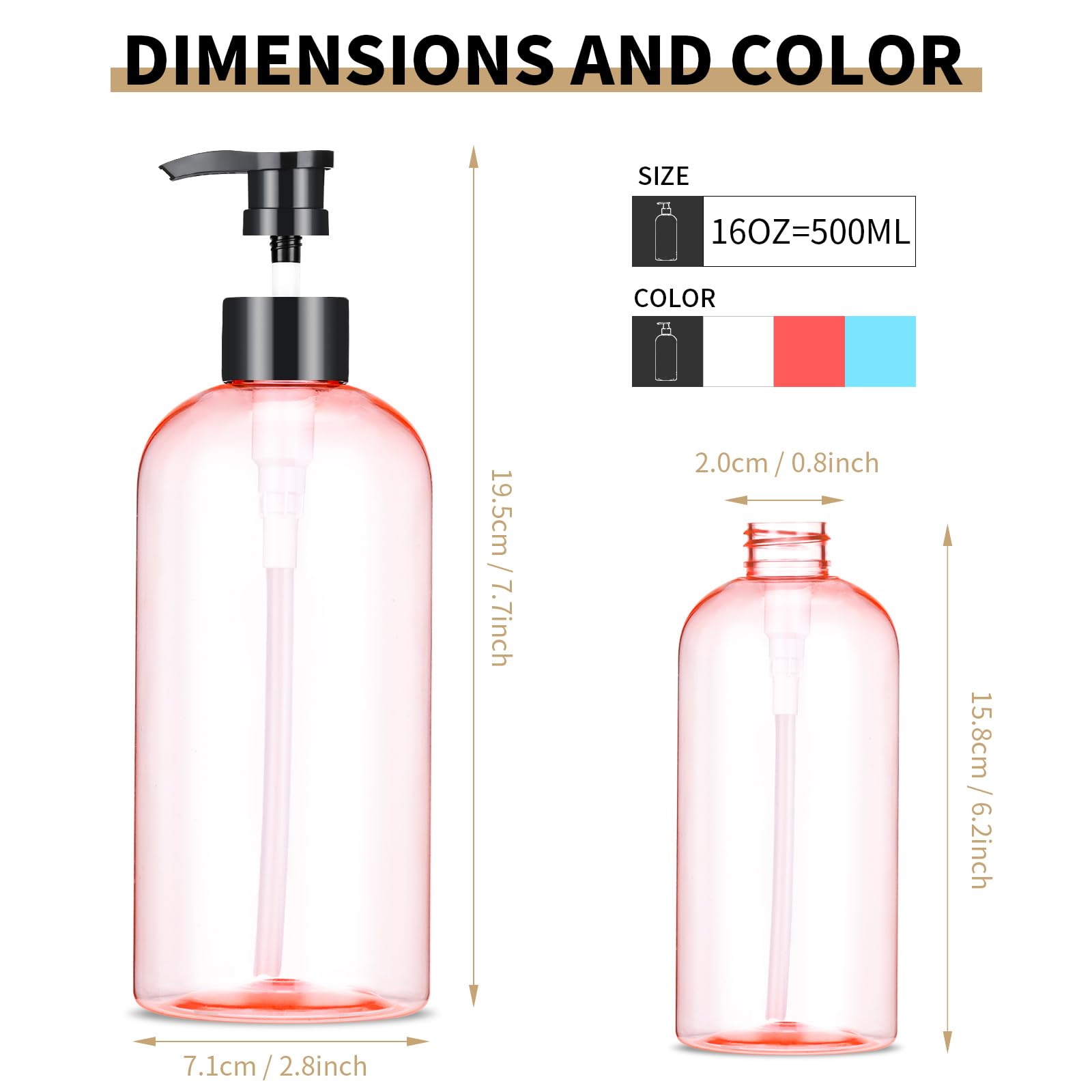 - Size:16 oz 500 ml Pump Bottles, large capacity, available in clear blue and red three color Dispenser Pump Bottle for your choice