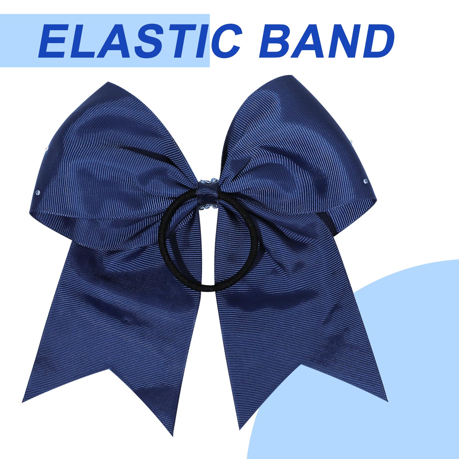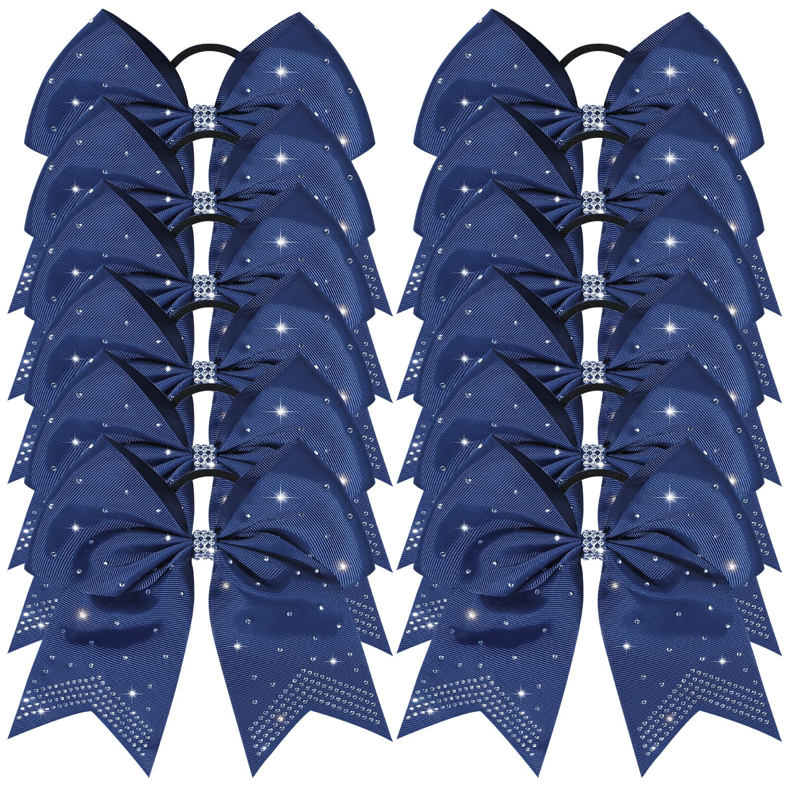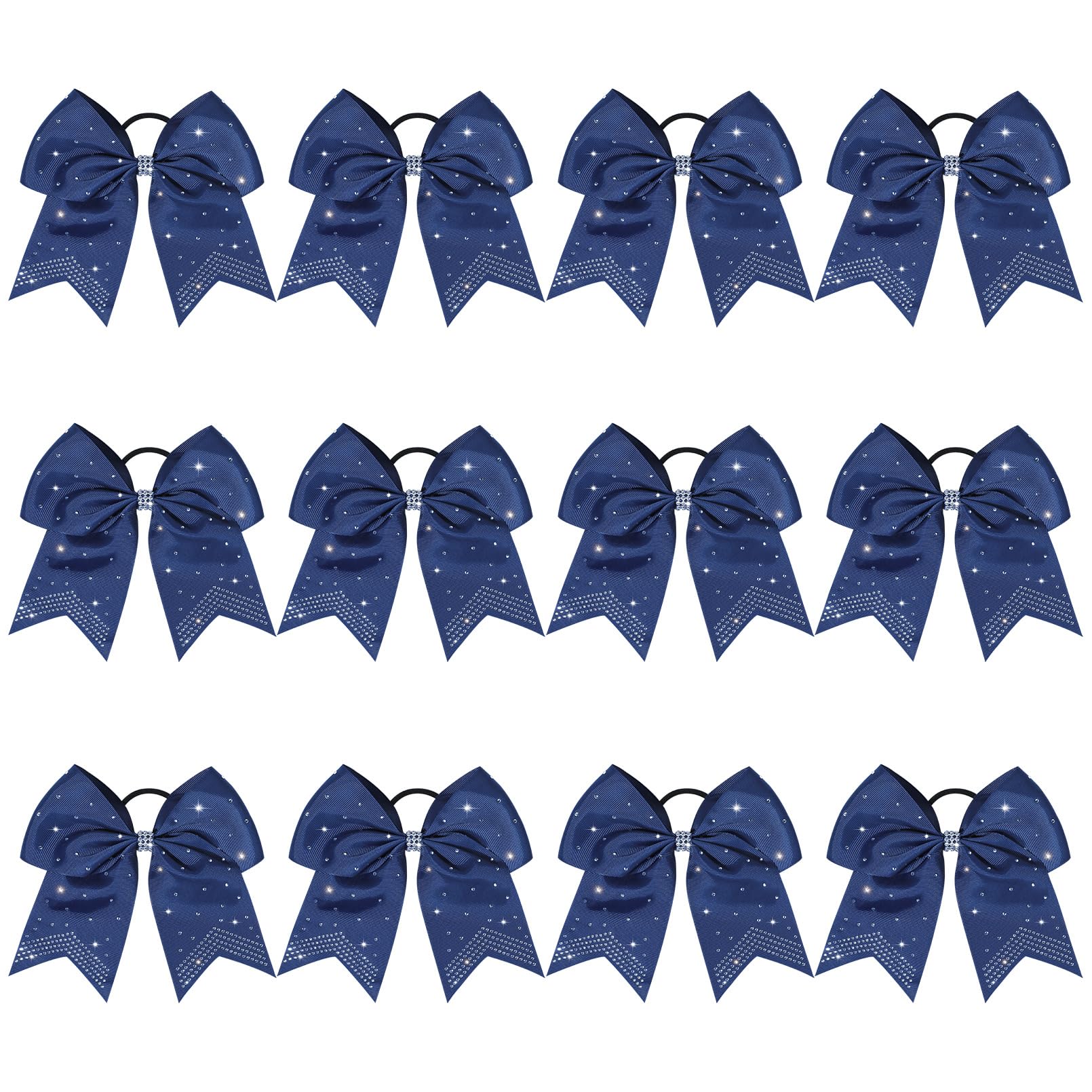 CEELGON Large Rhinestones Cheer Bows, 12 PCS Glitter 7" Cheer Bows Ponytail Holder for Cheerleaders Girls Softball Sports Competition, Navy with Full Rhinestone
