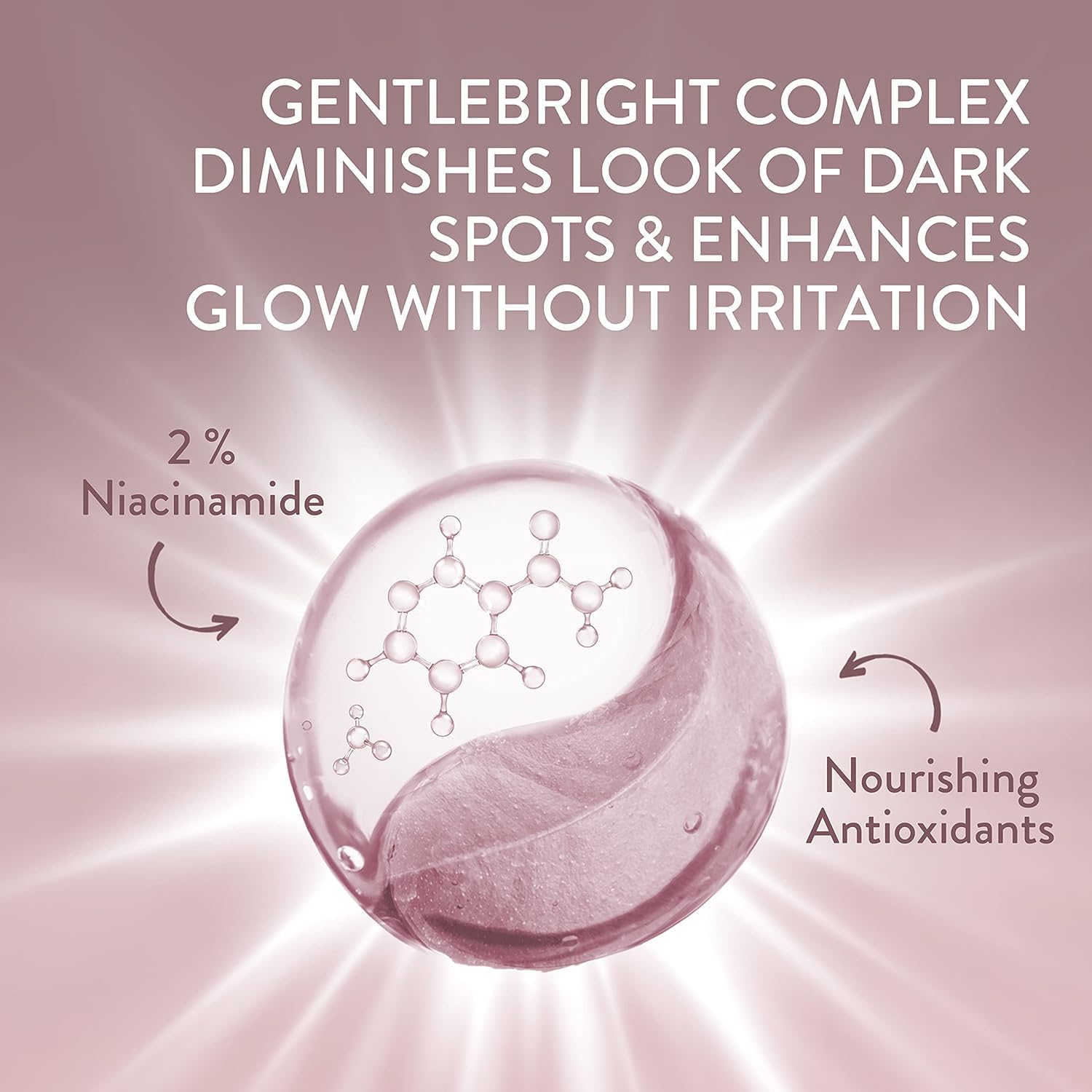 - GentleBright COMPLEX: Powered by 2% niacinamide (vitamin B3) and nourishing antioxidants to reduce the appearance of dark spots, brown spots, age spots, hyperpigmentation, and post acne marks to even skin tone for a brighter, more radiant complexion