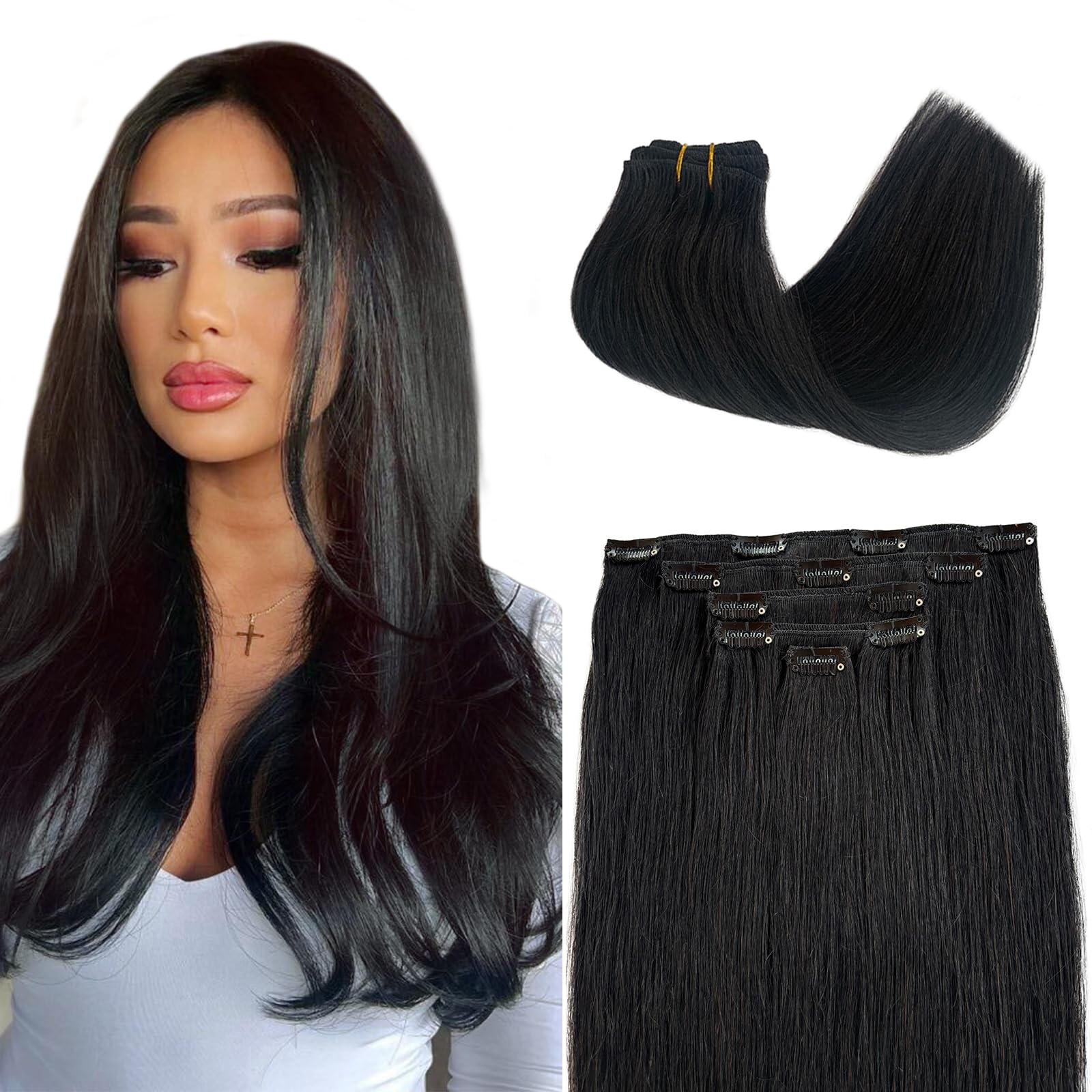 - Clip in Hair Extensions Premium Real Human Hair: clip in hair extensions are real human hair salon quality hair extensions, extremely soft to the touch, silky and smooth, blend in perfectly and seamlessly with your own hair; #1b natural black clip in extensions, the actual color may have slight difference due to monitors or light; if you had problems with color matching, please feel free to get in touch with us