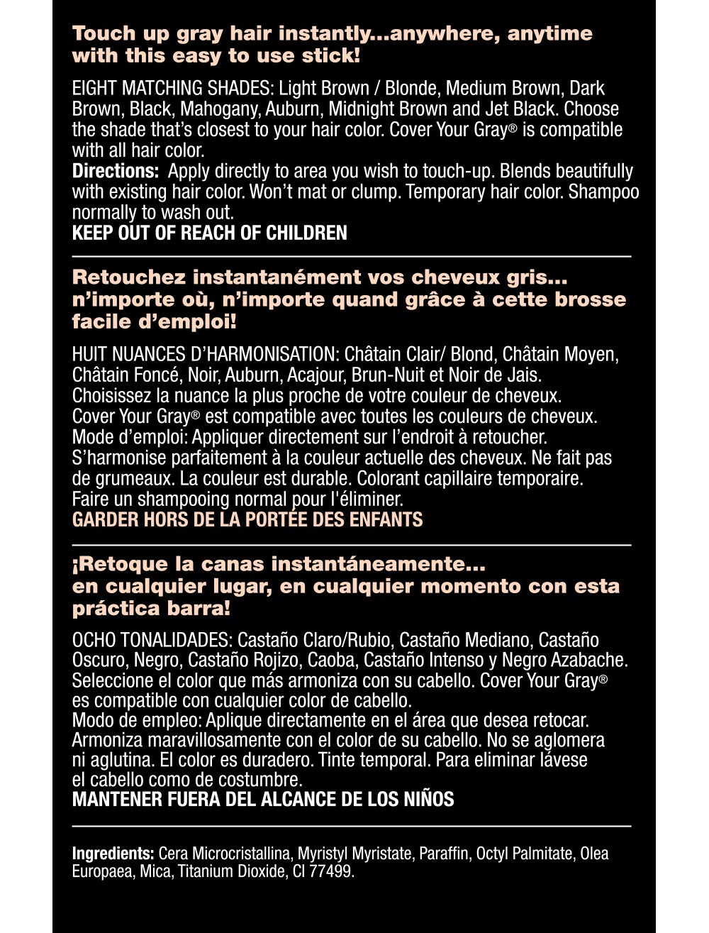 - The Cover Your Gray Touch-Up Stick is one of the original Cover Your Gray products. Available in 8 color shades, this Lipstick applicator is ideal for broad areas of gray hair.