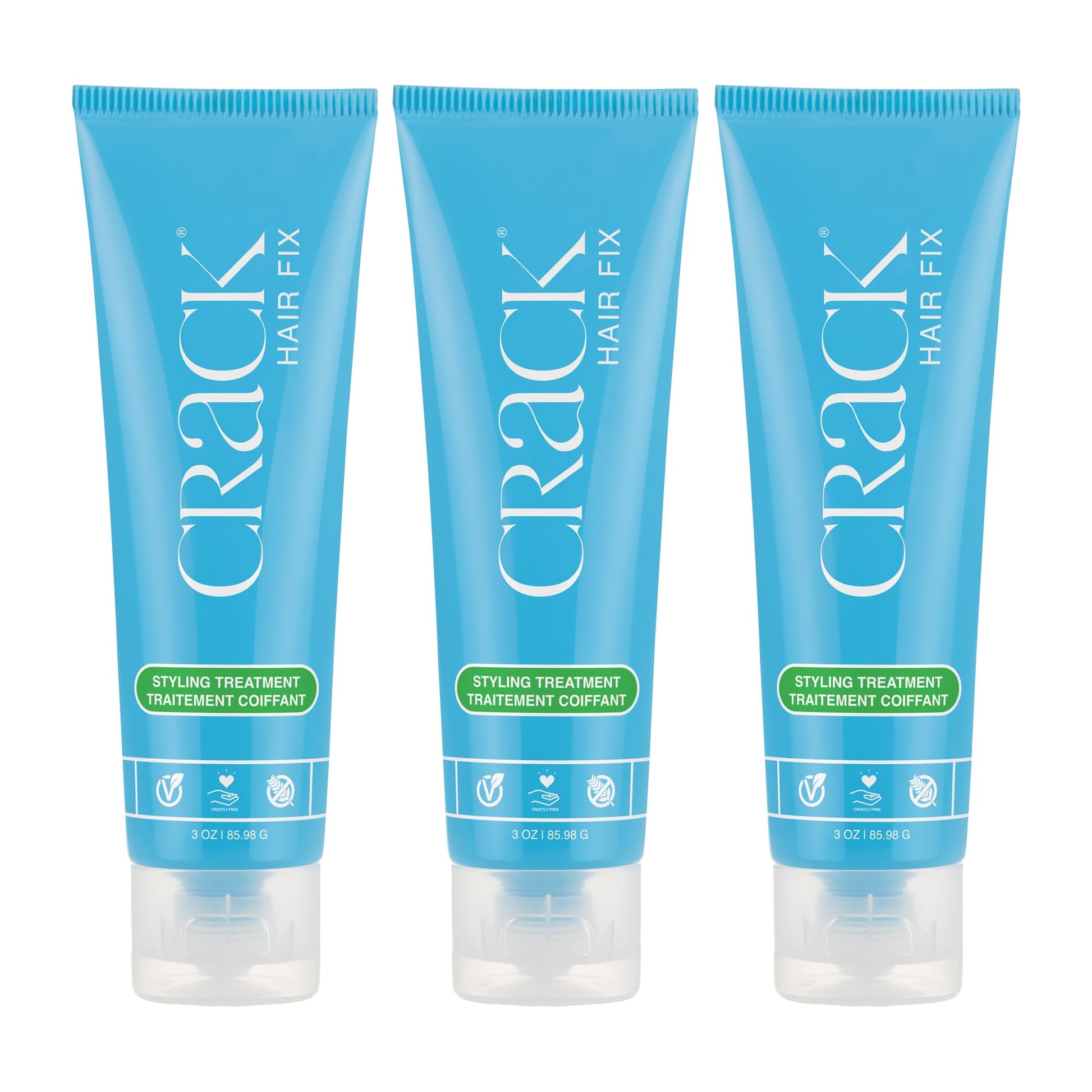 Crack Hair Fix Styling Treatment - Multi-Tasking, Anti-Frizz, Leave-In Styling Cream with Protection from Humidity, Chlorine, Heat Treatments & Sun, 3 oz (Pack of 3)