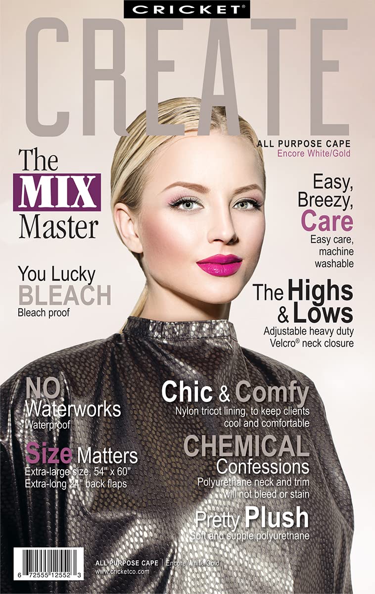 Cricket Encore Waterproof Salon Cape - Bleach-Proof, Adjustable, Extra-Large, White Gold