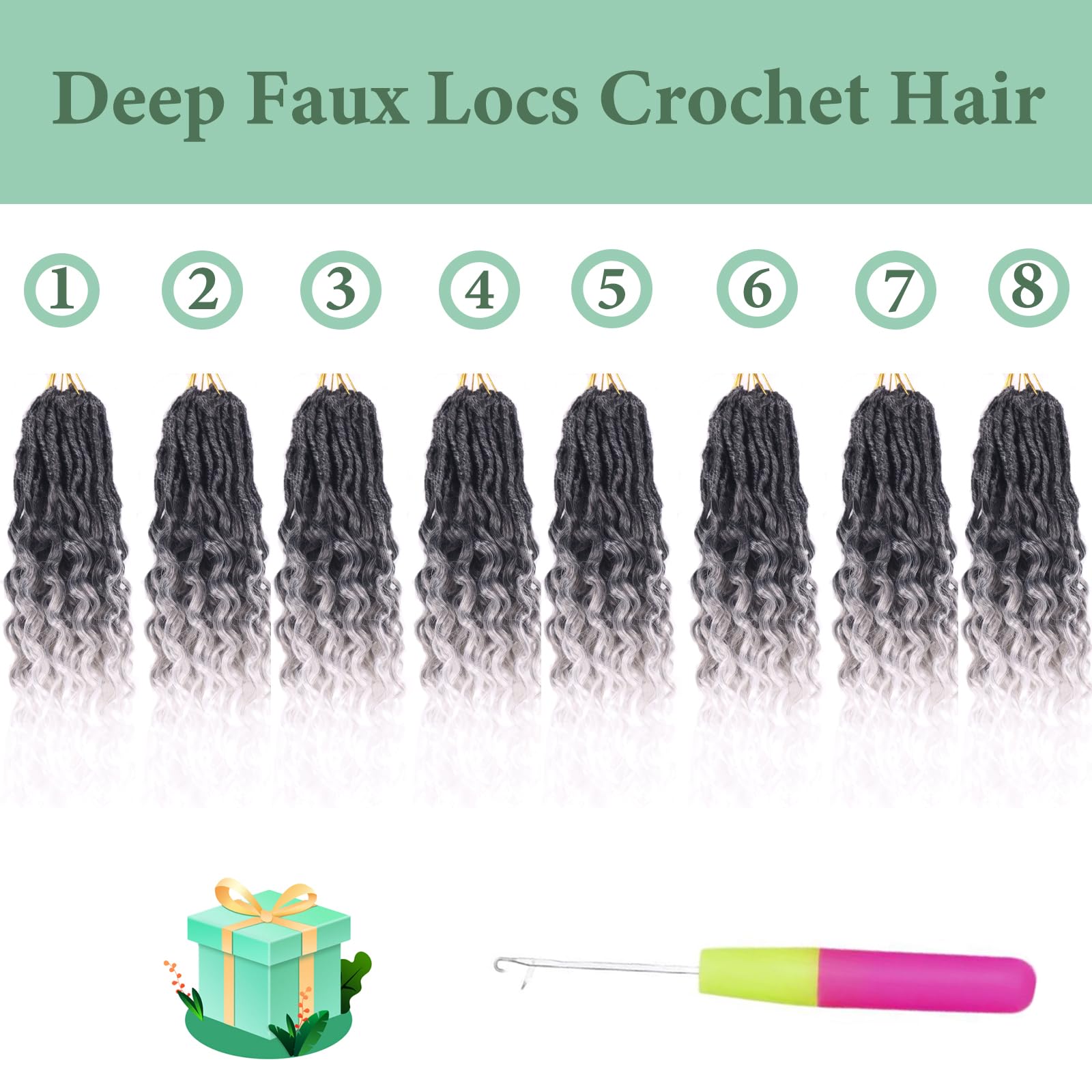 - Faux Locs Material:Deep Faux Locs Crochet Hair is made with high-quality, synthetic hair fibers.Natural looking with blends well,softness,lightweight and comfortable to wear.The natural-looking texture mimics real hair,ensuring a seamless blend with your natural hair,Making it the perfect choice for any occasion