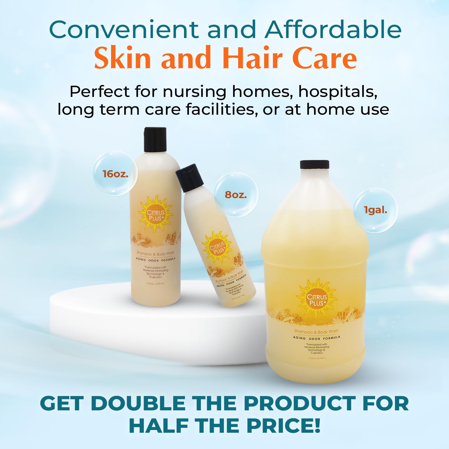 Deodorizing Citrus Plus Elder Shampoo and Body Wash by BoaVida with new leak-proof cap, Soap Made with Persimmon to Treat the Presence of Nonenal and Remove Old Person Smell, 16 oz