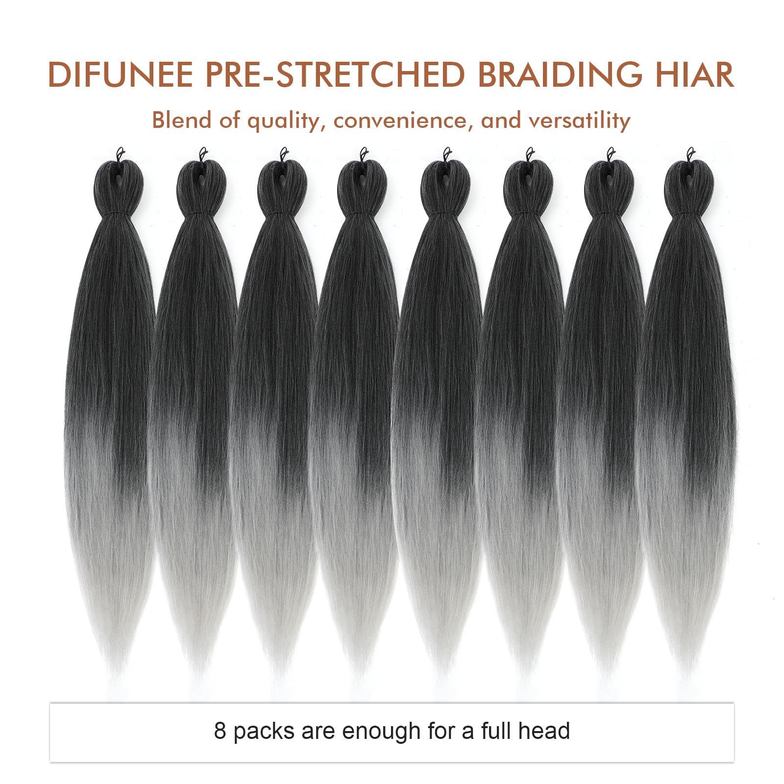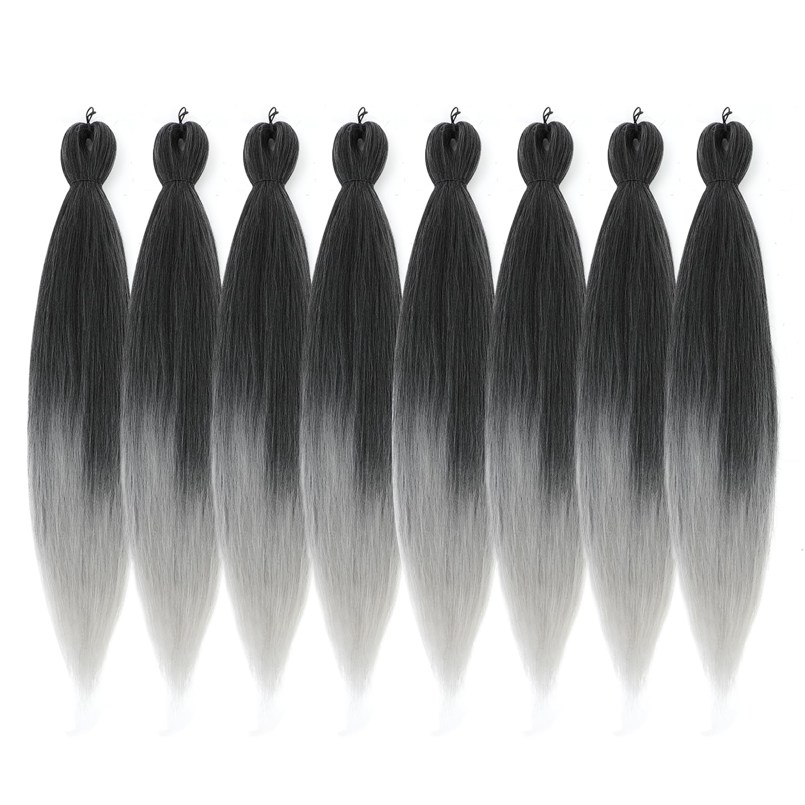 DIFUNEE Pre-stretched Braiding Hair - 16 Inch 8 Packs Ombre Gray Short Braiding Hair For Twist or Box Braids, Yaki Texture Hot Water Setting Synthetic Braiding Hair Extensions (16 Inch, T-Gray-8P)