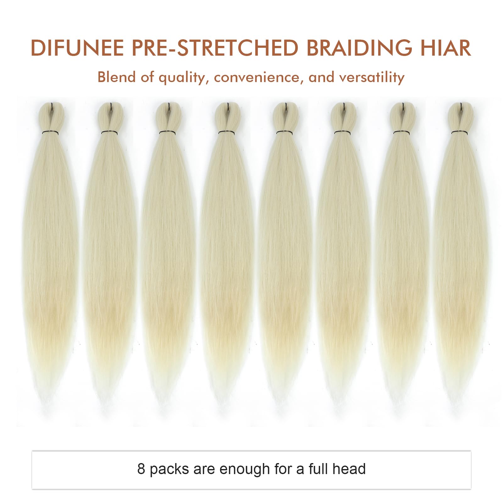 DIFUNEE Pre-stretched Braiding Hair - 24 Inch 8 Packs Off-White Long Braiding Hair For Twist or Box Braids, Yaki Texture Hot Water Setting Synthetic Braiding Hair Extensions (24 Inch, #613-8P)
