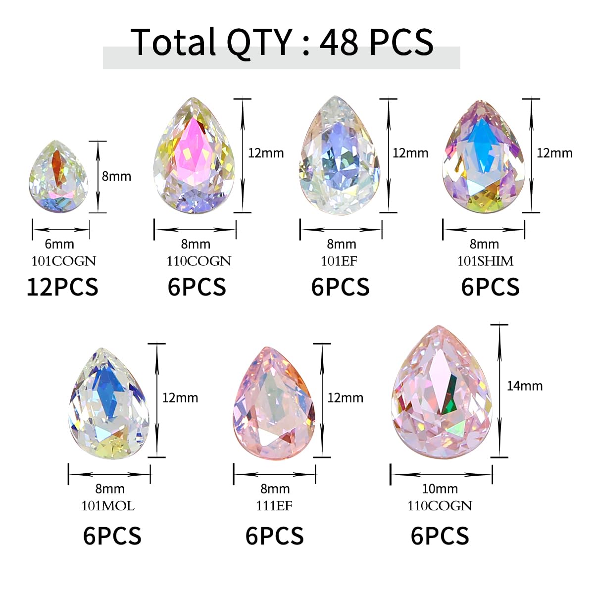 DONGZHOU Big Nail Rhinestone,48Pcs 3D Nail Arts Pointback Nail Diamonds K9 Glass Stones Bling Nail Beads, Rhinestones Nail Charms and Gems for Manicure Decoration DIY Crafts