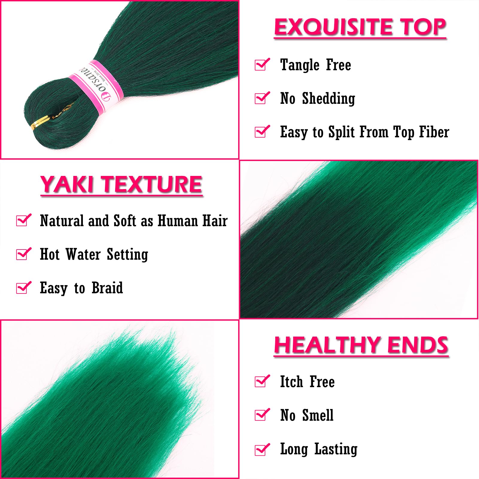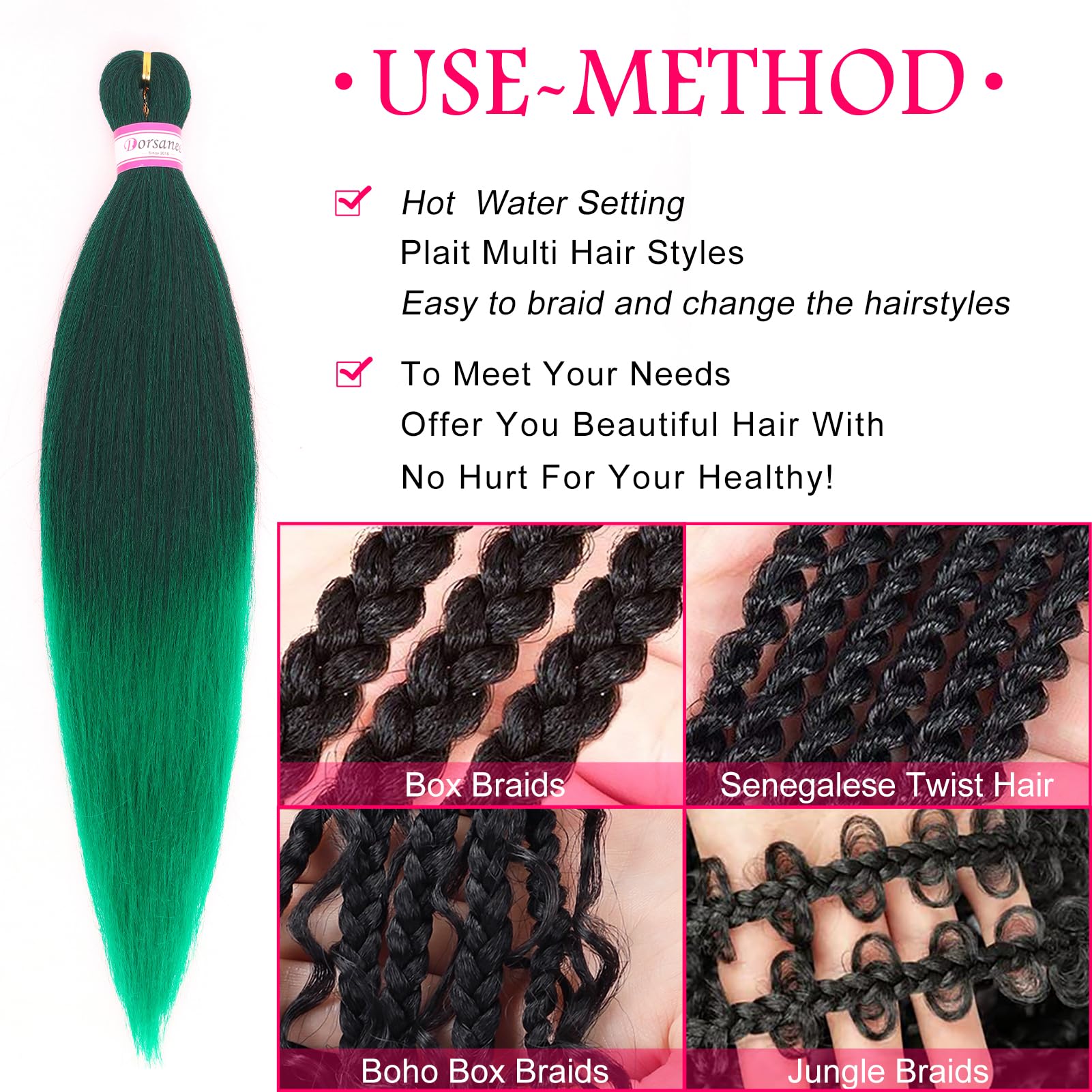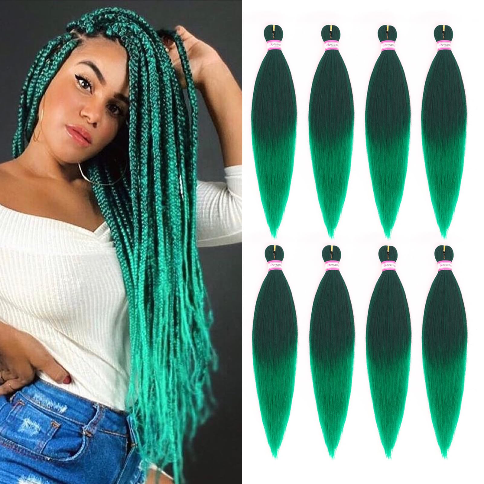 Dorsanee Braiding Hair Pre Stretched 20 Inch 8 Packs Ombre Green Braiding Hair Extensions for Crochet Box Braids Twists Locs Hair Soft Yaki Texture Hot Water Setting (20inch,#1B/Green)